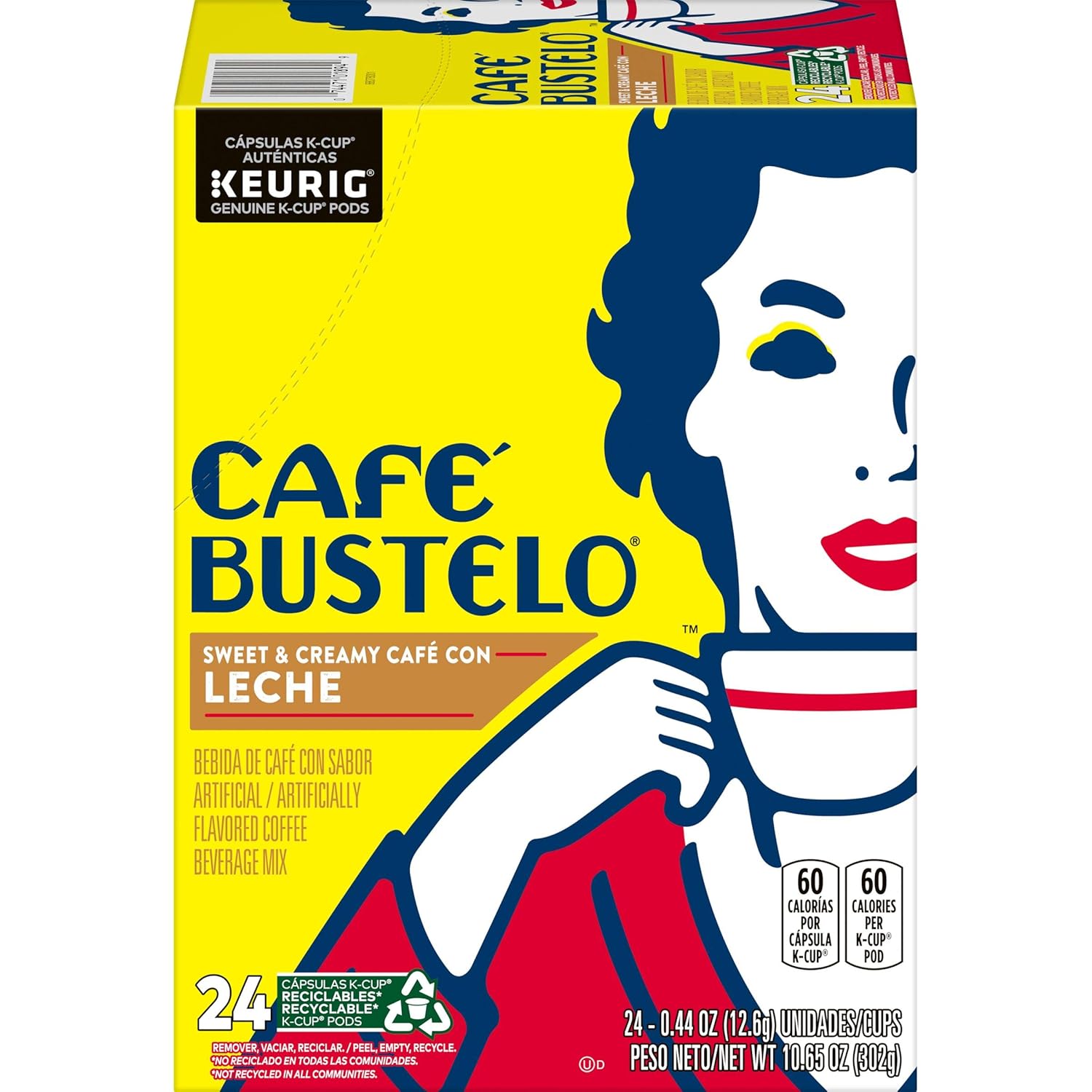 - Contains 4 boxes of 24 Café Bustelo Café con Leche flavored coffee beverage K-Cup pods (96 count Total)