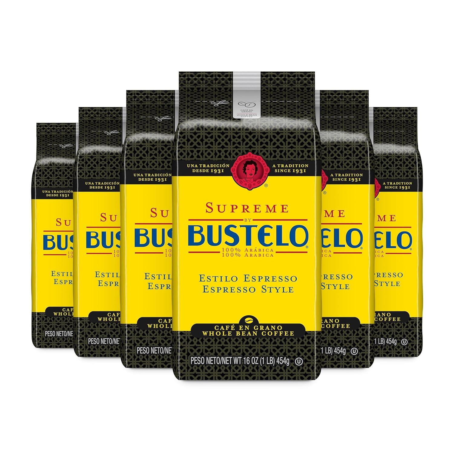 - Contains six (6) 16-oz. bags of Supreme by Bustelo whole bean coffee