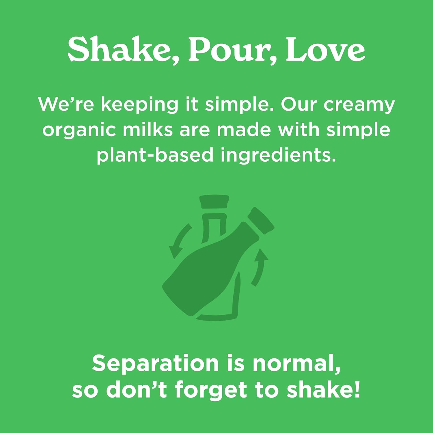 - DON'T FORGET TO SHAKE: Settling is natural in high-quality plant-based milks so remember to shake well!