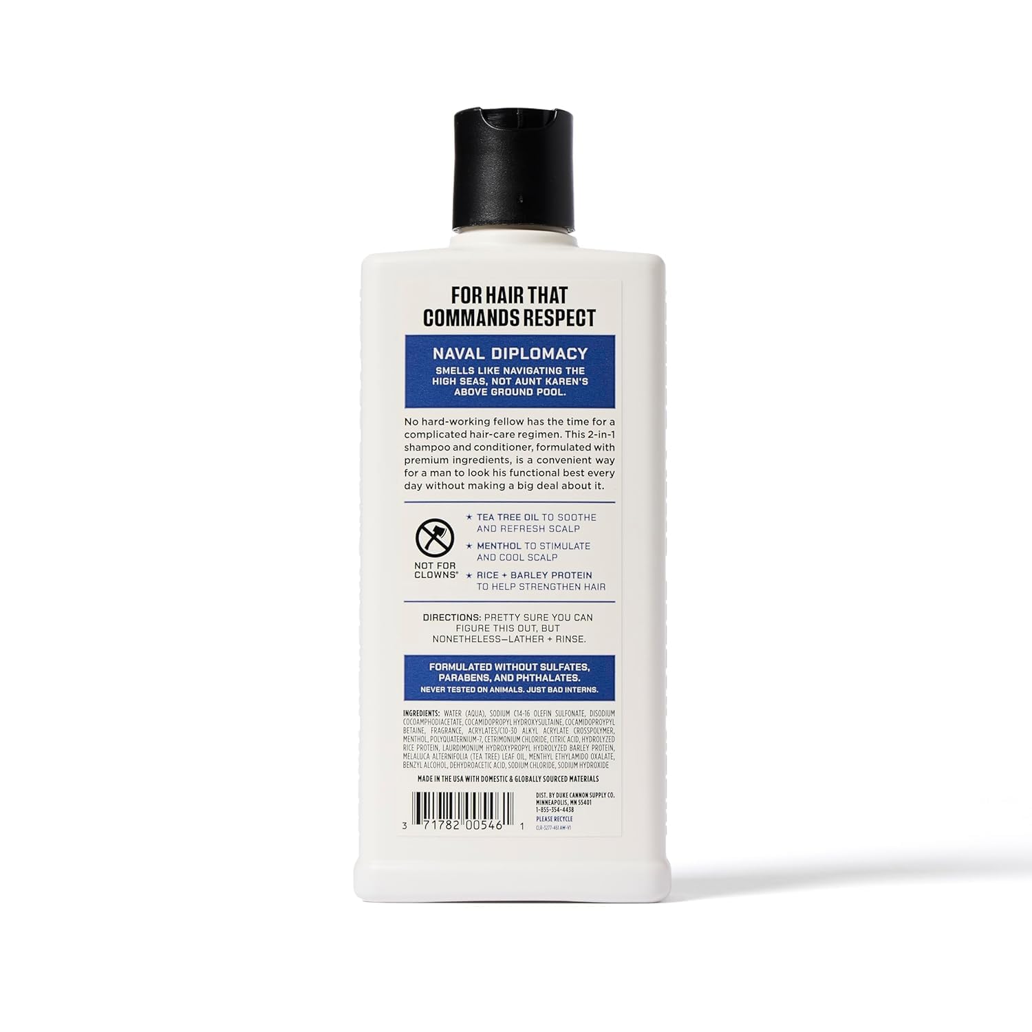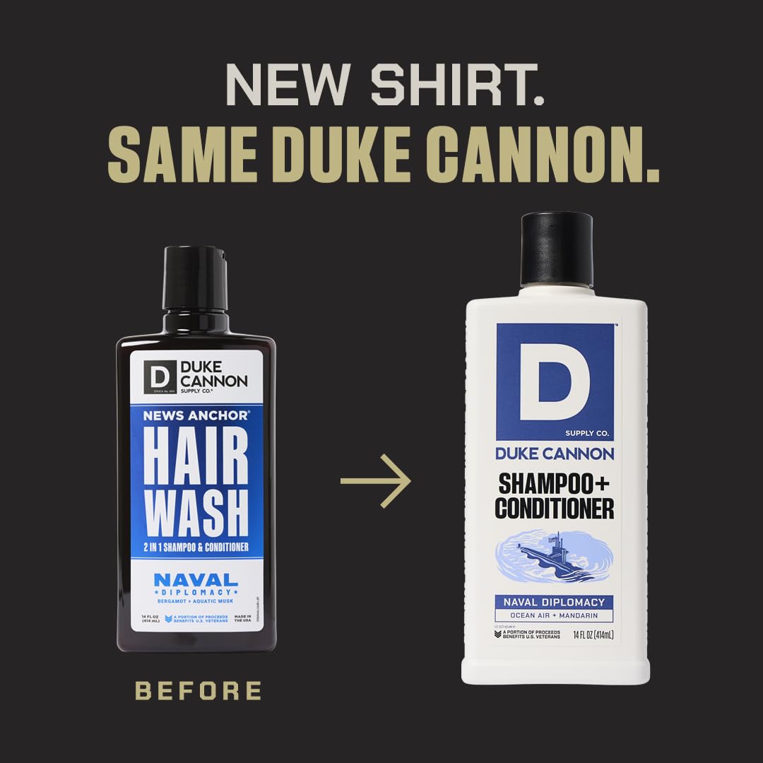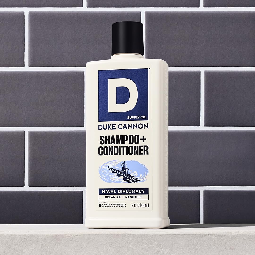 - Duke Cannon Naval Diplomacy 2-in-1 Shampoo & Conditioner - Cleans and conditions with premium ingredients, including tea tree oil to refresh and soothe your scalp—effortless, everyday grooming for the man who keeps it simple.