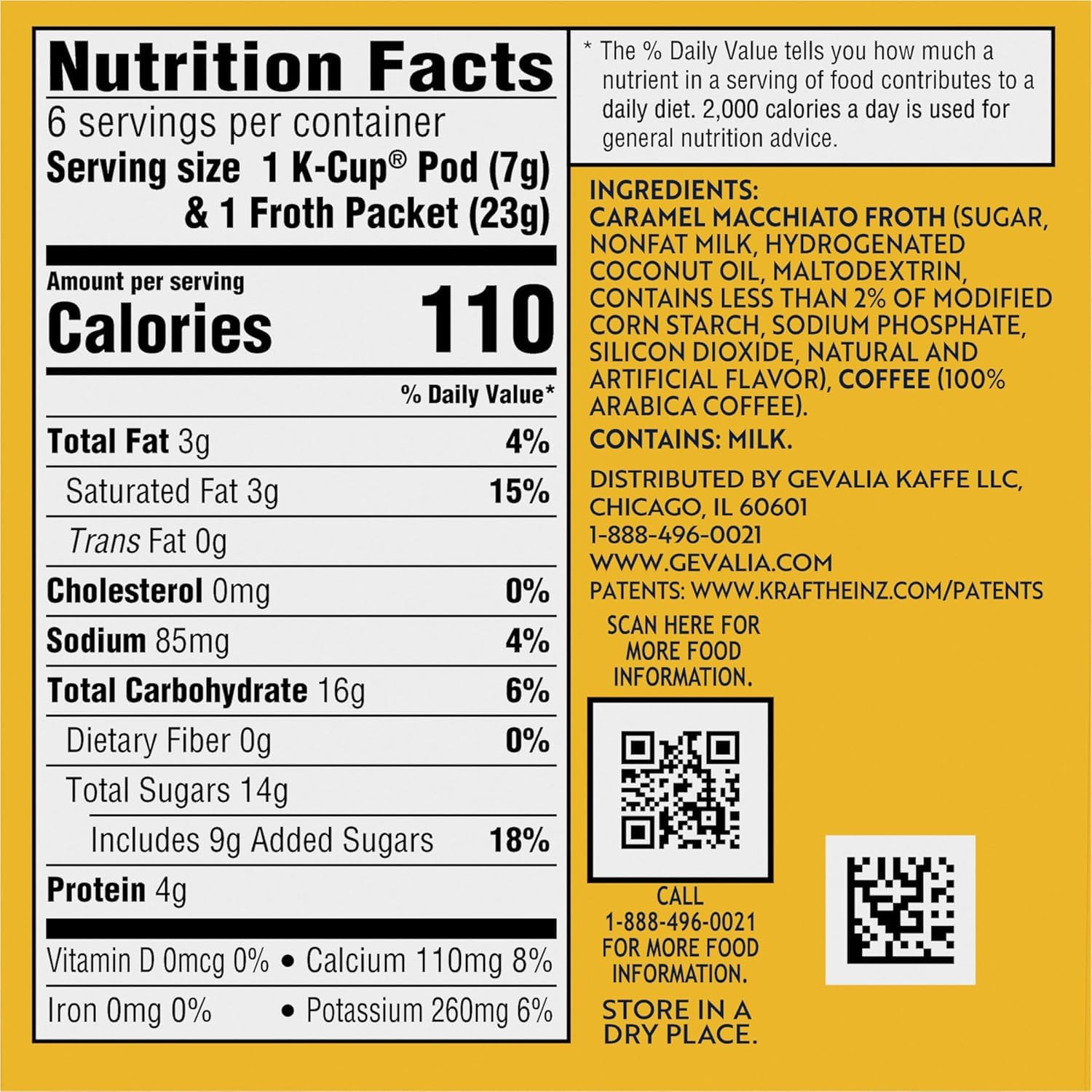 - 6 ct box of Gevalia Frothy Artificially Flavored Caramel Macchiato Espresso Style K-Cup Coffee Pods & Froth Packets