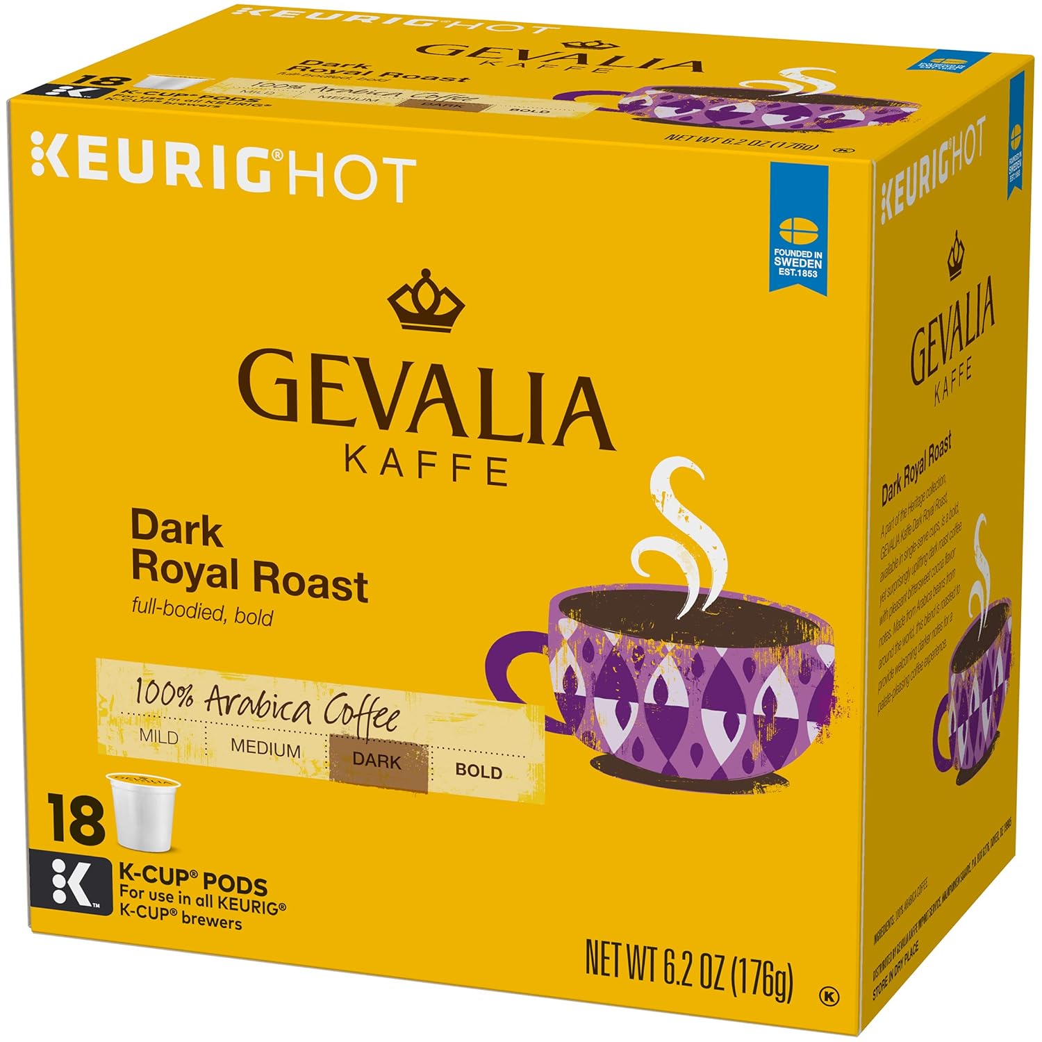 - Crafted in the Swedish tradition, Gevalia Dark Royal Roast Coffee K Cup Pods are rich & never bitter