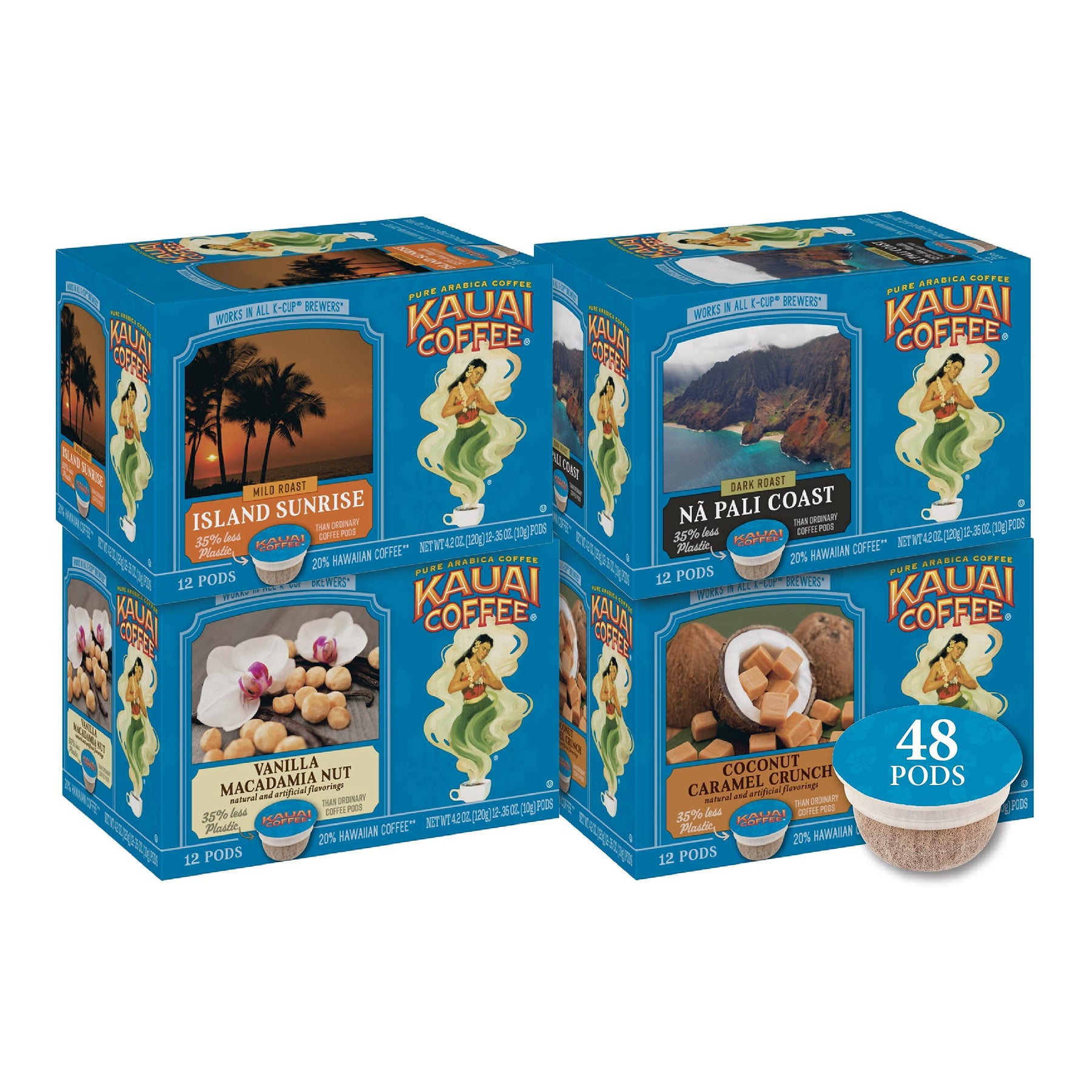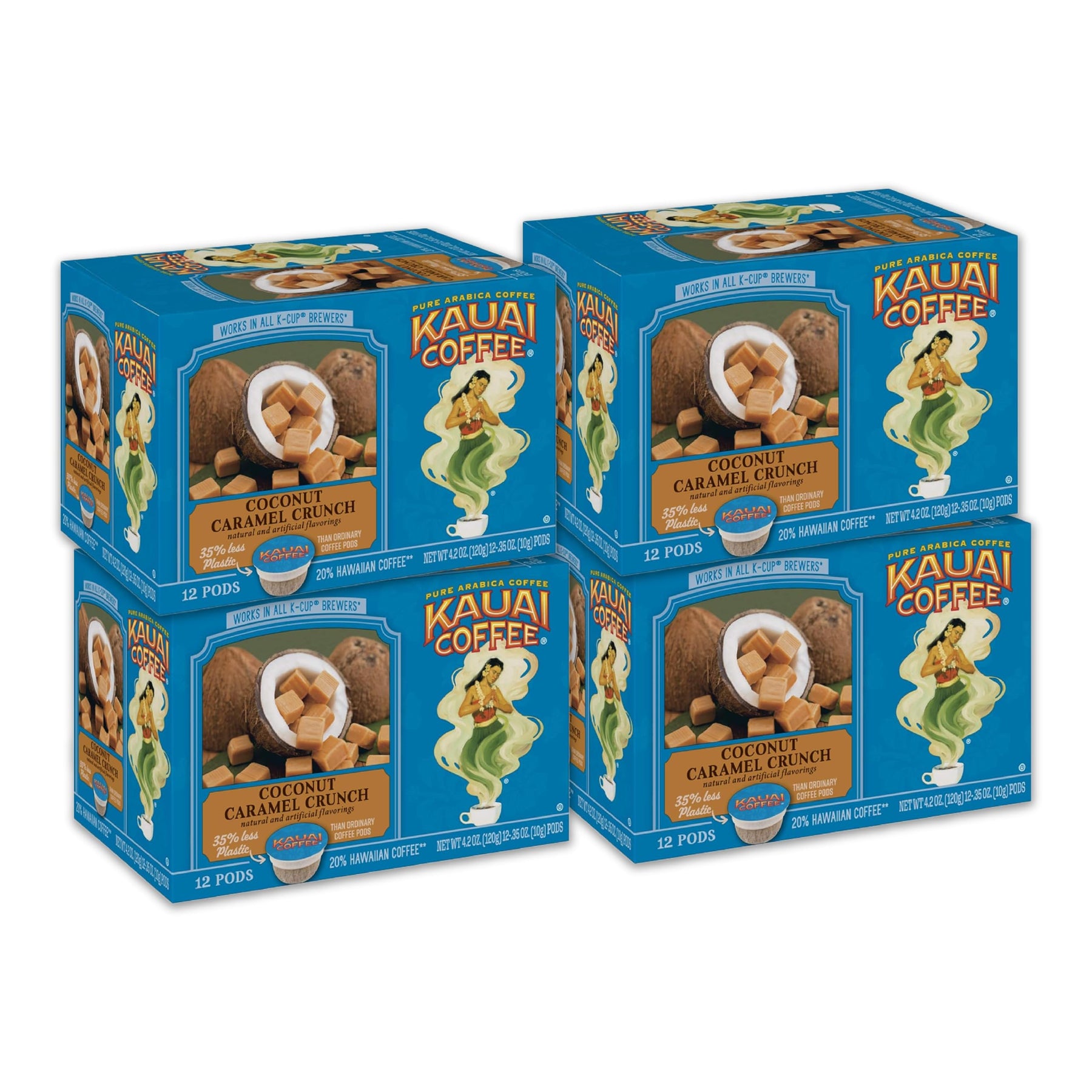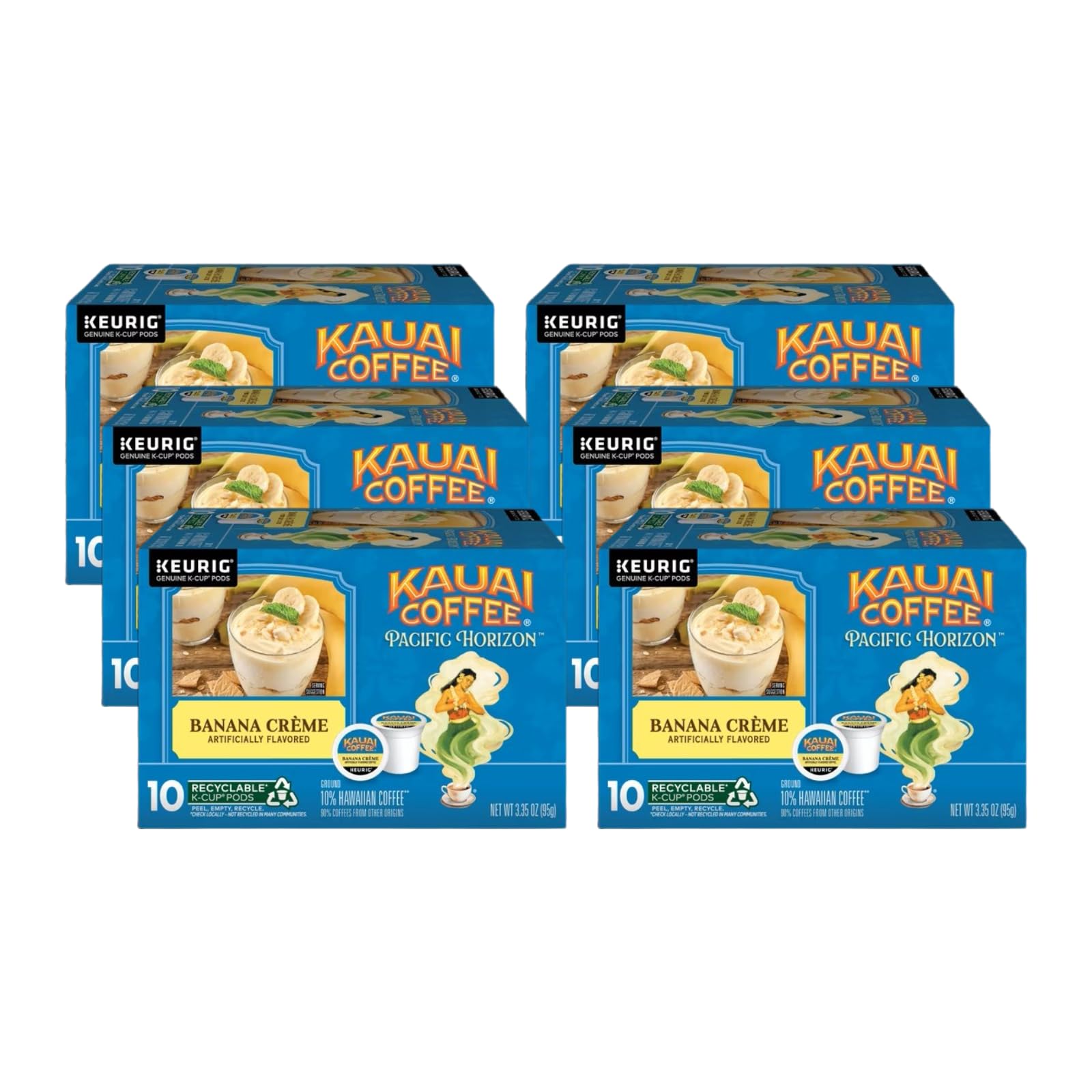 Discover the tropical delight of Kauai Coffee Banana Crème Medium Roast, a unique coffee experience tropical flavor of bananas combined with creamy vanilla. Made with 10% Hawaiian-origin Arabica beans sourced from the fertile volcanic soil of Kauai, this coffee delivers a rich and flavorful cup without bitterness. Ideal for single serve coffee enthusiasts, these coffee pods are made for Keurig coffee makers, bringing you a taste of paradise with every cup. Kauai Coffee offers a smooth coffee experience, perfect for those seeking a balance between bold and mild flavors. Whether you're starting your day or enjoying an afternoon treat, Kauai Coffee will transport you to Hawaii’s largest coffee estate. Choose a more eco-friendly way to enjoy your coffee with our recyclable pods but make sure to check locally, not recycled in many communities, as recycling options may vary. The Kauai Coffee dedication to quality is evident in each cup, ensuring a consistent and satisfying brew made with Arabica coffee. Enhance your coffee ritual with the best coffee that not only provides exceptional taste but also contributes to sustainable practices. Embrace the spirit of the island and indulge in an experience that invigorates your senses and elevates your day with its decadent flavor.