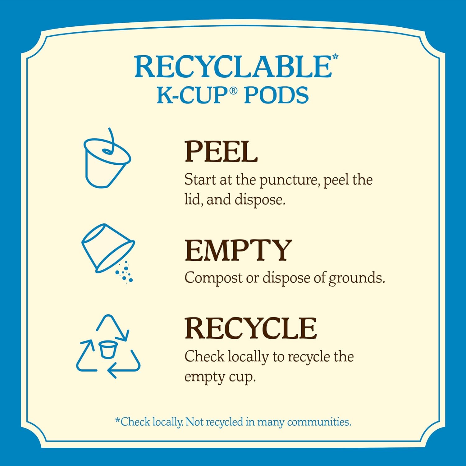 - ECO-FRIENDLY BREWING: Make an environmentally conscious choice by enjoying our coffee pods that are recyclable (check locally, not recycled in many communities) and made for Keurig coffee makers. Your morning ritual can now align with sustainable practices without compromising on taste.