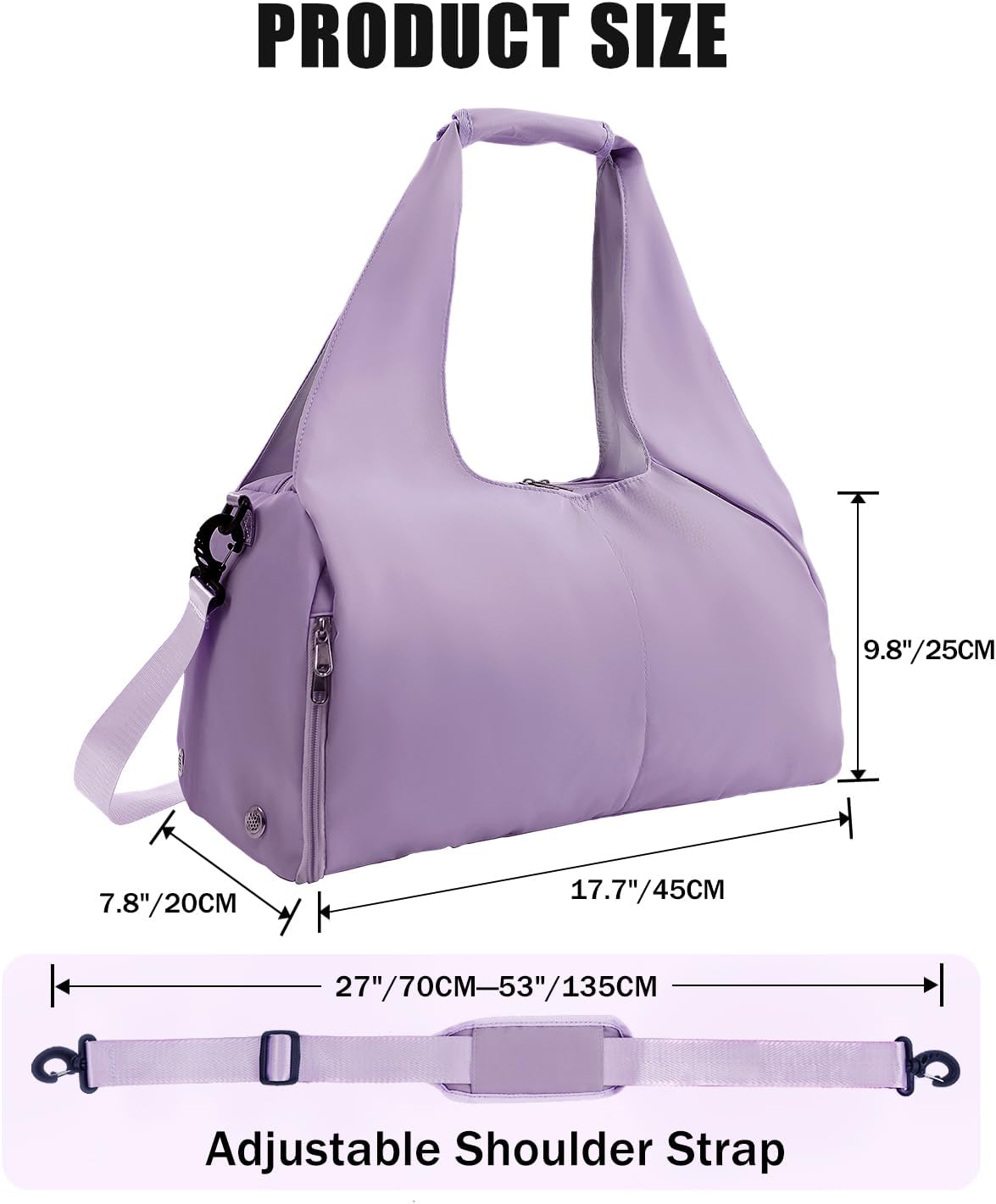 - Compact Size: Measuring 17.72 x 7.87 x 9.84 inches, this gym bag can easily hold two to four outfits. It's perfect for use as a gym bag, yoga mat bag, or for short trips