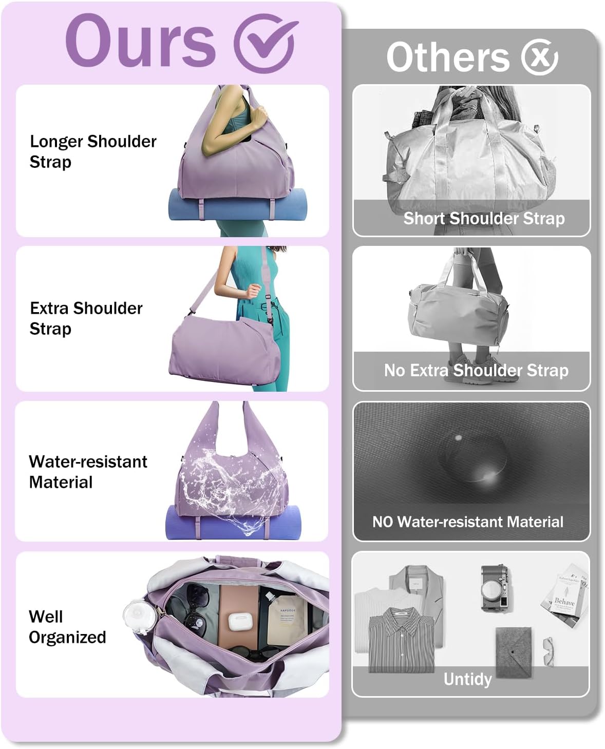 - Versatile Carrying Options: The longer tote strap enables you to carry the bag as a gym tote, while the detachable and adjustable shoulder strap allows you to wear it as a crossbody duffel bag