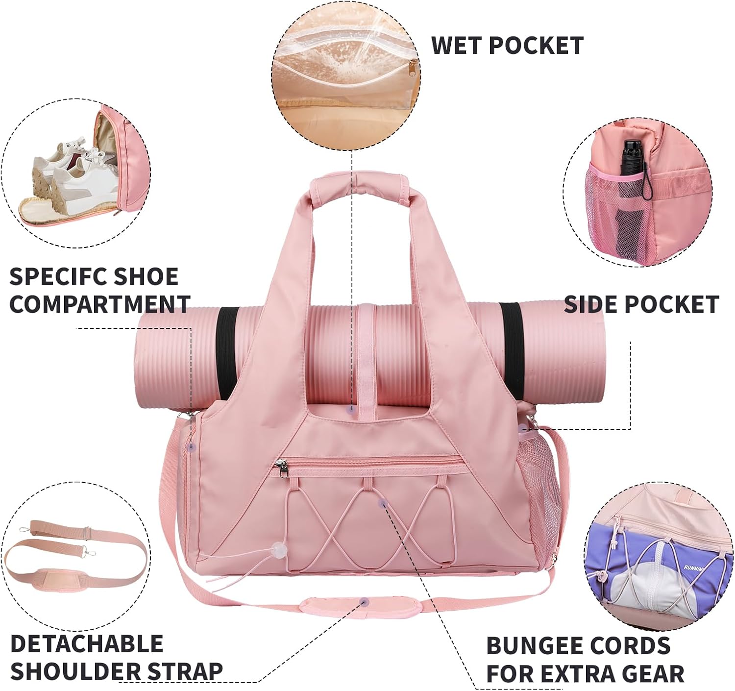 - 【Dry Wet Separated And Shoe Compartment】: The workout bag is equipped with wet and dry separation bag to help you separate dry goods and wet goods. It is suitable for your family travel to pack all toiletries, wet clothes or towels. The yoga gym bag is equipped with an independent shoe compartment to help you better put your shoes in the travel bag. Even if the shoes become dirty, they will not dirty other items,Additional storage pockets to organize your items and gym accessories.