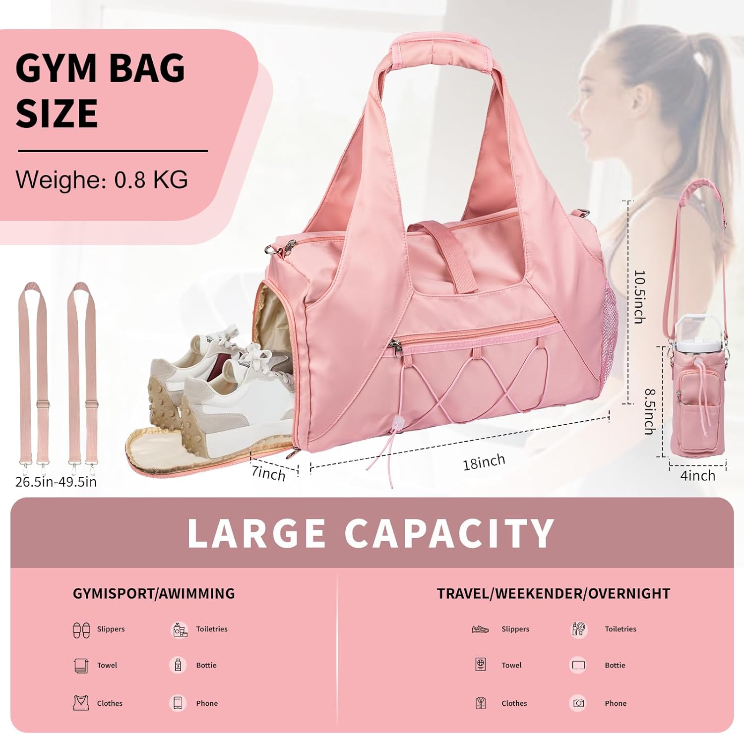 - 【Portable & Comfortable】: We pay attention to every detail to ensure maximum comfort. This women Gym sports bag features wider handles, thickened shoulder pads for added support, and waterproof fabric to protect your belongings. With an adjustable shoulder strap, which allows you to adjust the elasticity of the bag freely. Enjoy a comfortable and enjoyable experience wherever you go with this high-quality gym bag.