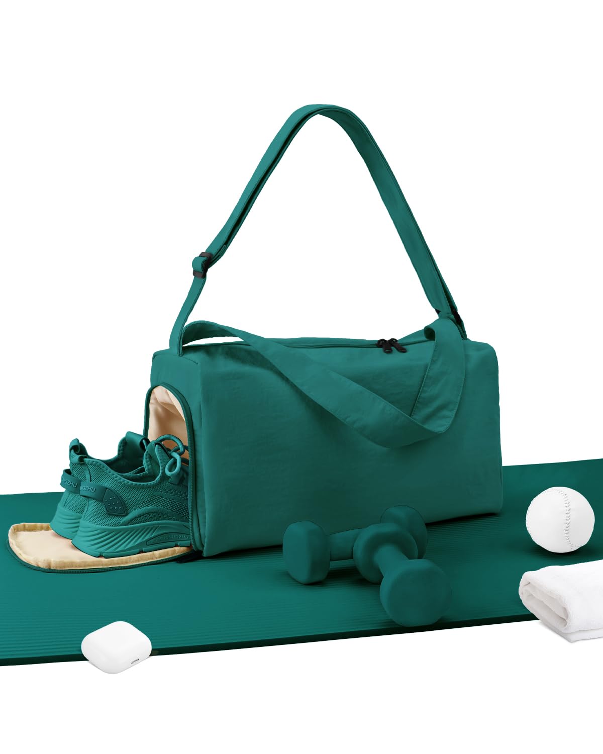 Small Gym Bag for Women with Shoes Compartment, Stylish Duffle Travel Bag for Plane, Lightweight Duffle Bag for Women & Men, Sport Gym Tote Bag with Wet Pocket for Yoga, Pilates, Swimming