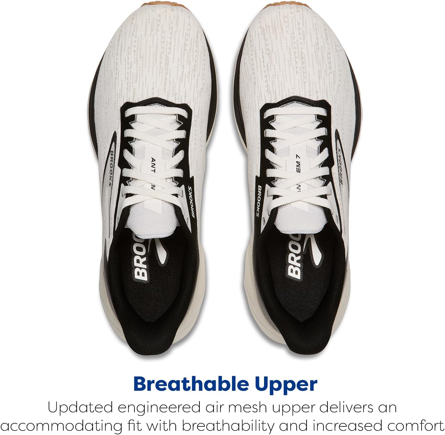 The Brooks Anthem 7 Sneakers are designed for comfortable road and track running. The open round-toe sneakers come with a synthetic mesh upper, nylon lining, and an EVA insole with removable sock liner. The Bio-mogo DNA adjusts to your stride for superior performance. The lace-up closure ensures a secure fit, and the Brooks logo on the side panel adds an iconic touch. Rubber outsole.