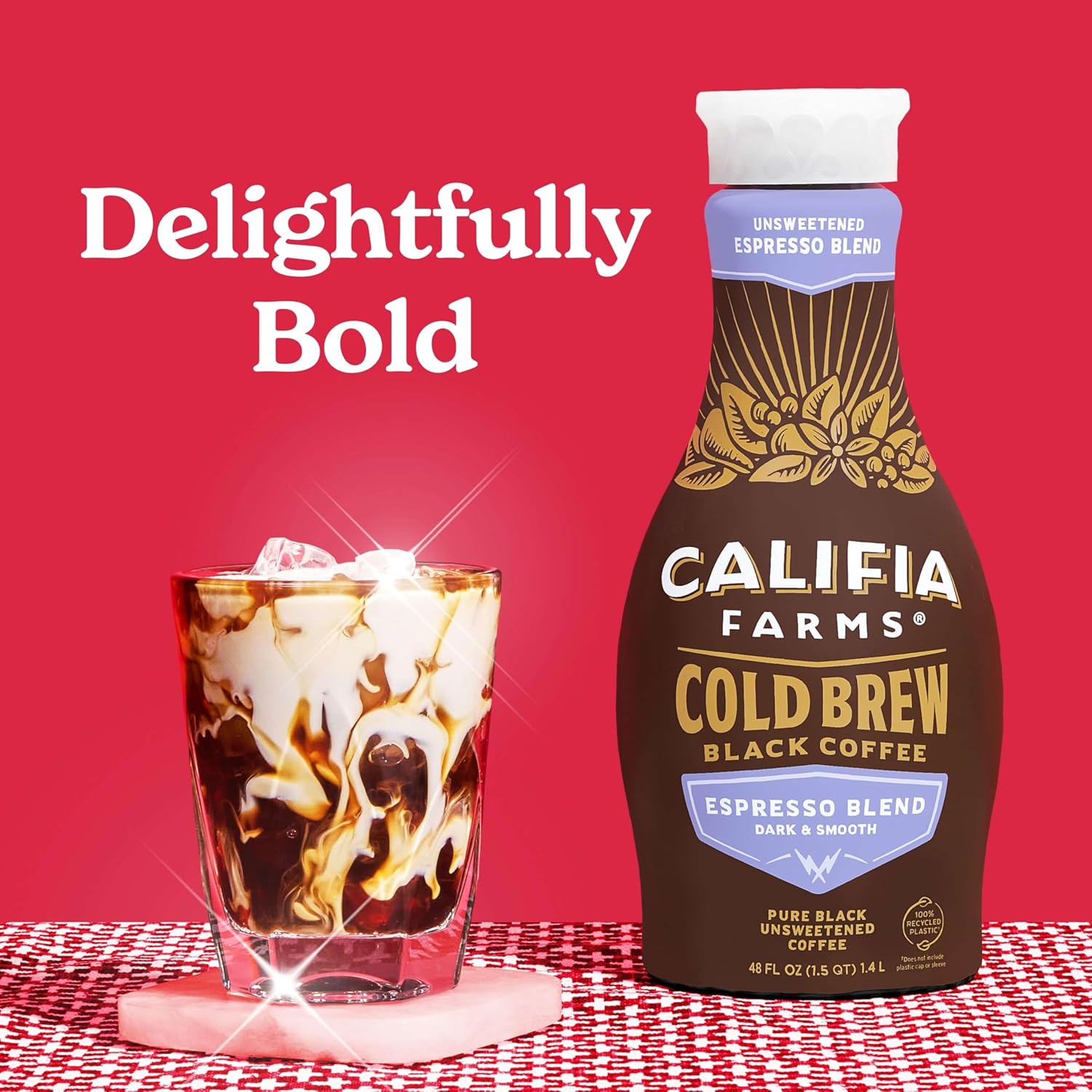- BREWED TO BLEND: A bold and rich espresso blend that’s unsweetened and pure black. It’s crafted for creativity: sip it straight, or blend it with Califia’s plant-based milks and creamers.