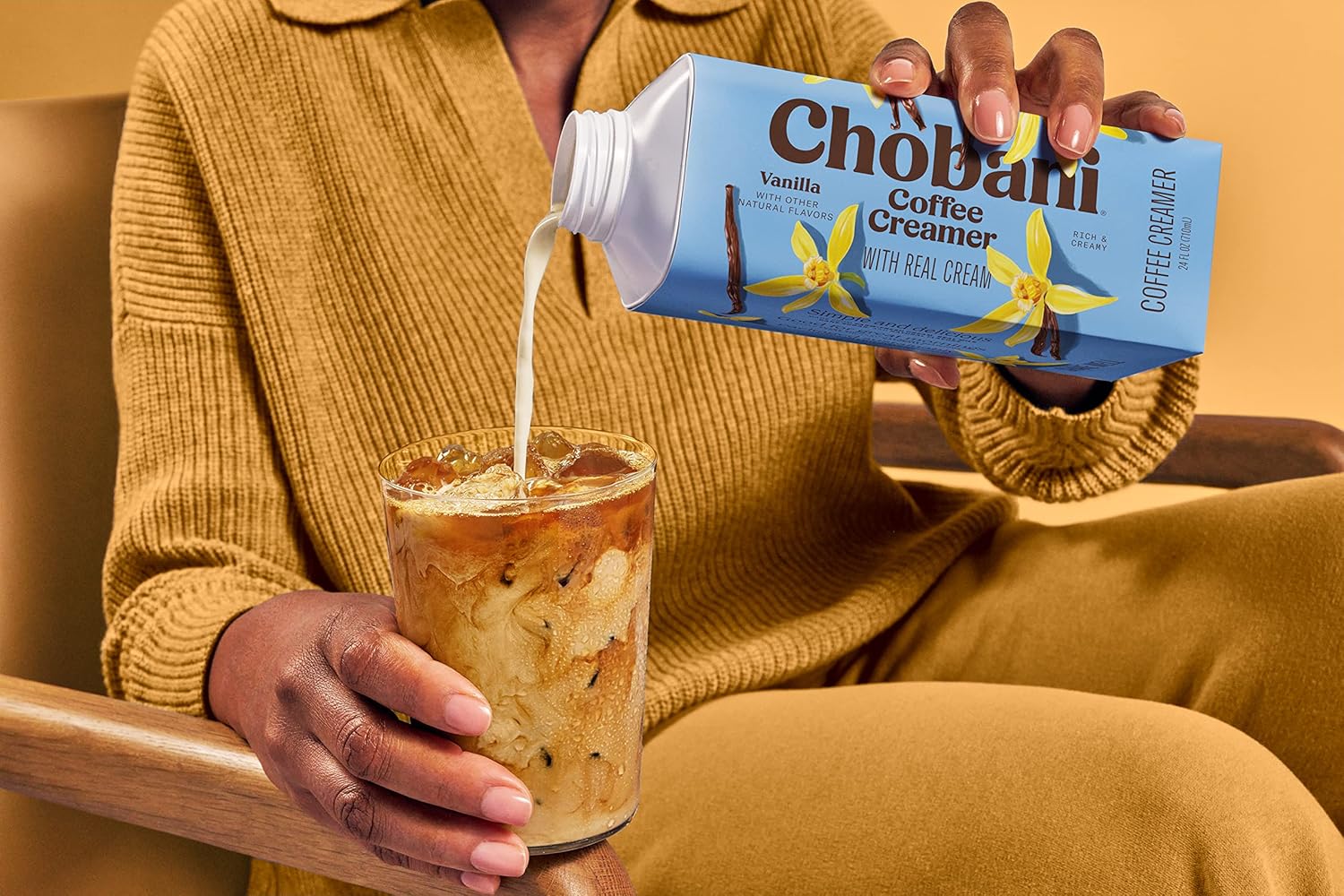 Introducing Chobani Coffee creamers. Get a farm-fresh feel at home with Chobani dairy creamers crafted with natural cream, real milk and real cane sugar. Add Chobani creamer to your favorite coffee drinks such as lattes and cold brew or get creative in the kitchen. Try creamers in recipes like baked goods or overnight oats for an extra touch of flavor. The whole family can enjoy Chobani Creamers throughout the day. Chobani dairy creamers are made with natural ingredients and nothing artificial, so find your favorite creamer flavors and start elevating your drinks and snacks today. We keep our creamer simple and delicious. Starting from fresh cream from our yogurt-making process, we add only milk, cane sugar, vanilla extract, and a touch of natural flavoring. Stirred into your coffee, Our creamer makes every sip sweeter than the last.