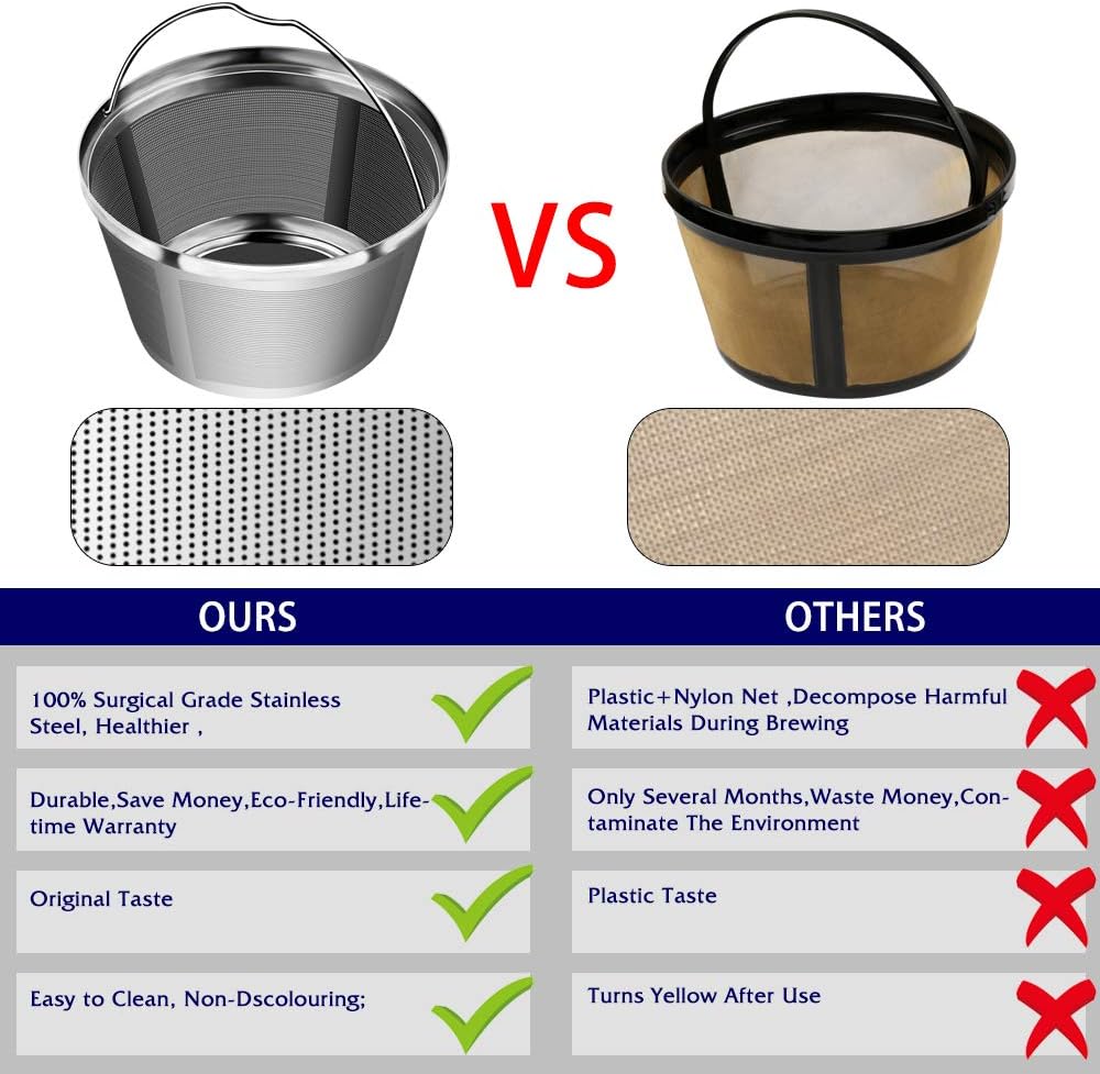 • ★ 【Serves You The Superior Taste Coffee】: Upgrade Stainless Steel reusable basket coffee filter, makes you healthier and it is durable for years, unlike other plastics, it produce Hazardous Materials when brewing and have the plastic taste;