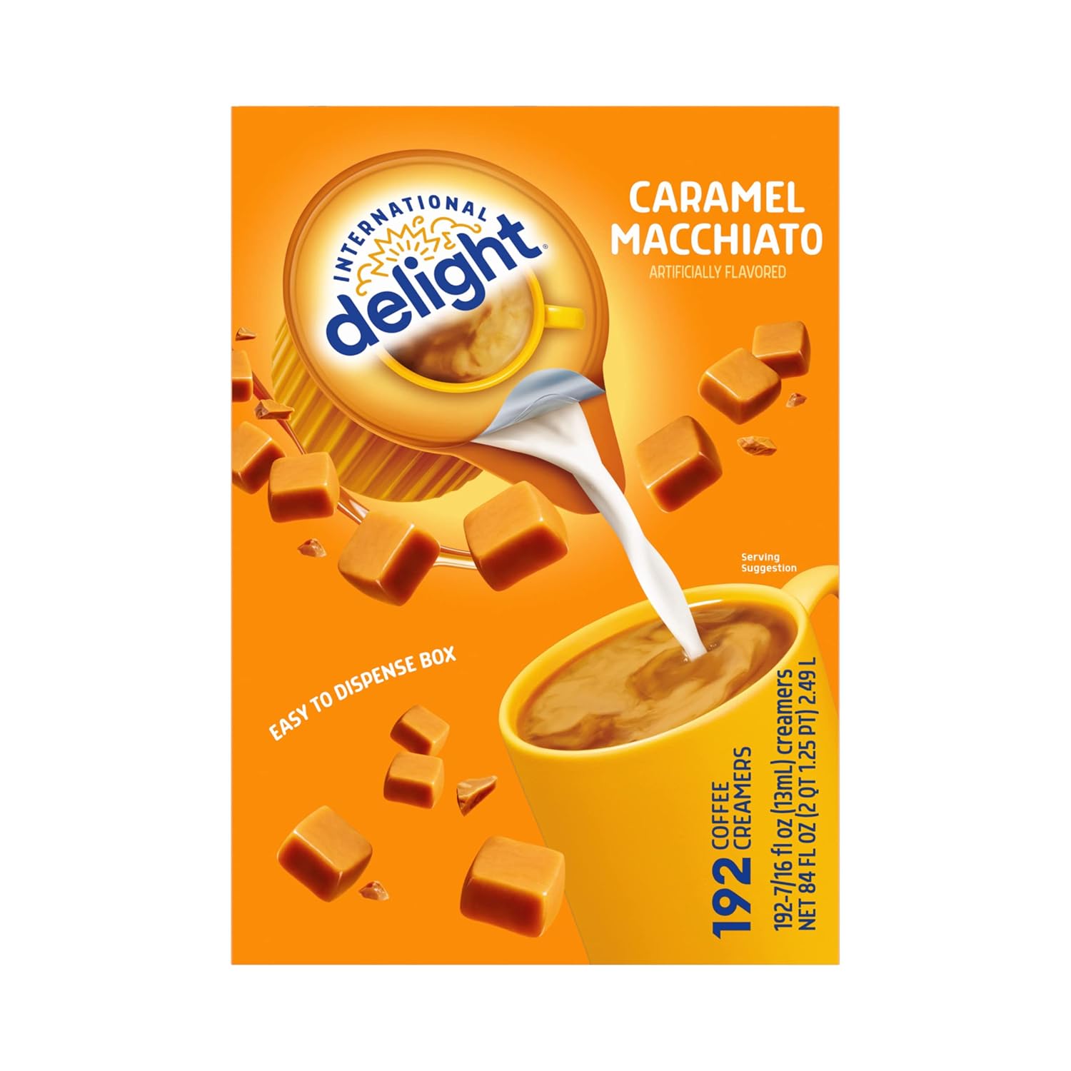 There’s nothing like a swirl of rich caramel flavor to brighten your day. International Delight Caramel Macchiato Coffee Creamer brings the taste of the coffeehouse to your home—and transforms your cup of coffee into a world of fantastic flavor. This set is a coffee lover’s dream, with 192 Creamer, Serving Size Pods, perfect for purse, pantry, or flavor emergencies—and no refrigeration needed! These single-serve creamers are both gluten- and lactose-free.