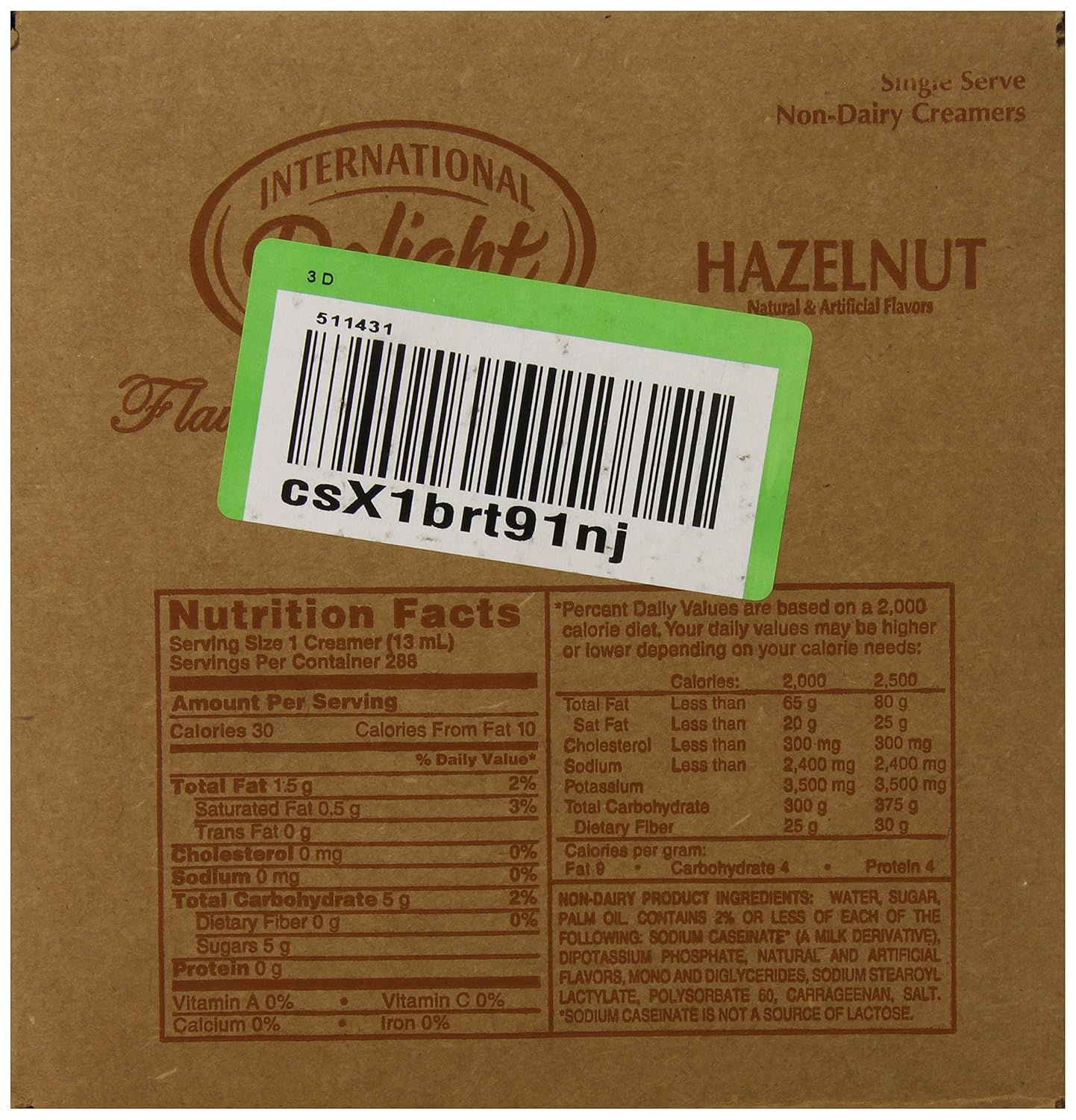 International delight hazelnut liquid creamer, 288-count single-serve This creamy blend brings home the rich flavor of toasted tropical hazelnuts. Warm, nutty and a delicious complement to any coffee. Sit up a moment of sweet inspiration and make each cup your own with International Delight