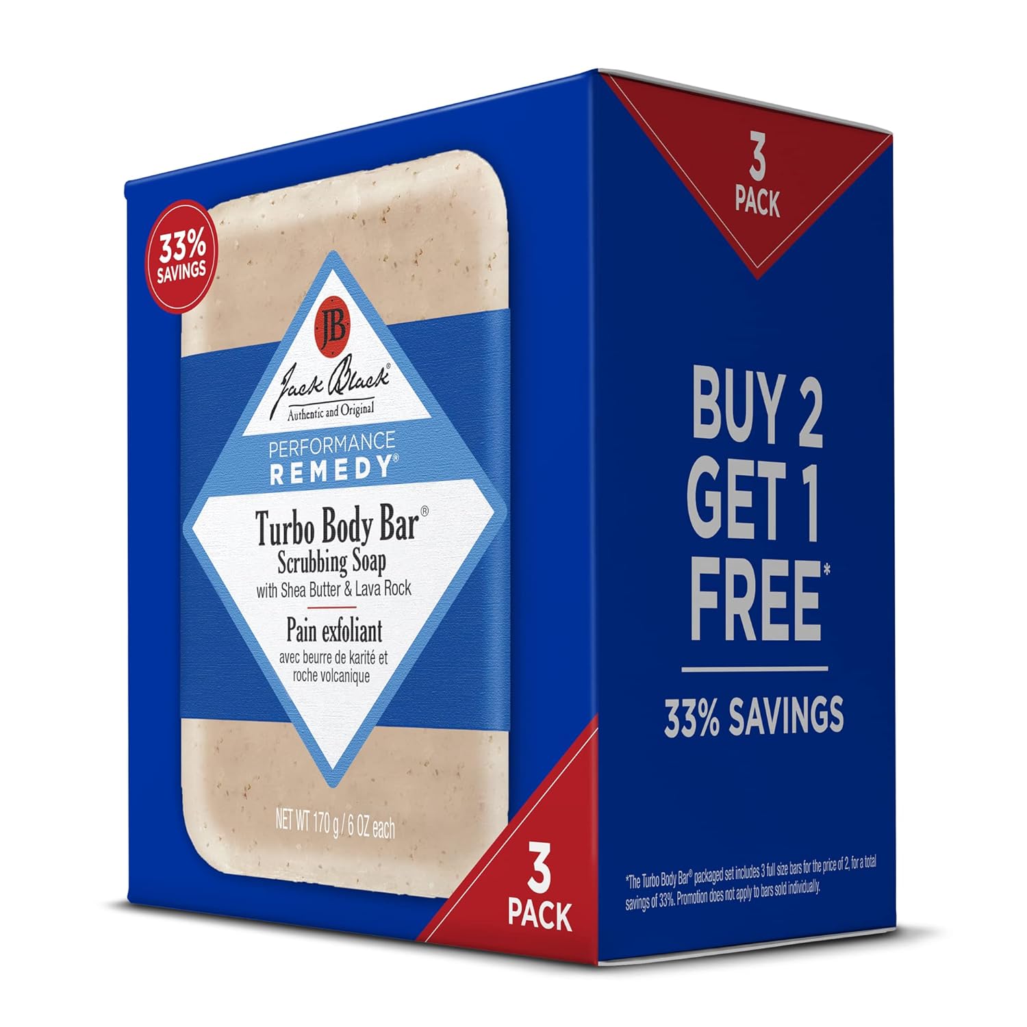 Jack Black Turbo Body Bar Scrubbing Soap - Mens Bar Soap, Exfoliating Bar Soap for Men, Mens Soap Bar, Soap, Exfoliating Soap Bar Men, Mens Body Soap Bar, Mens Body Scrub with Lava Rock