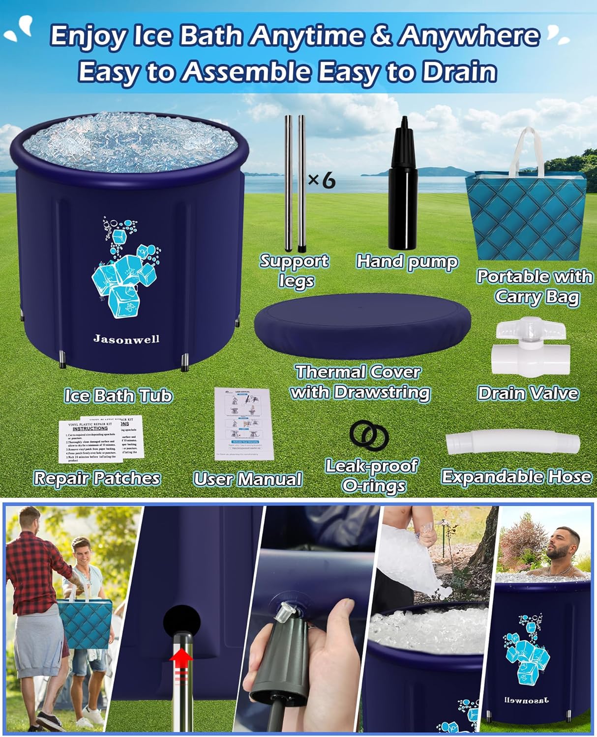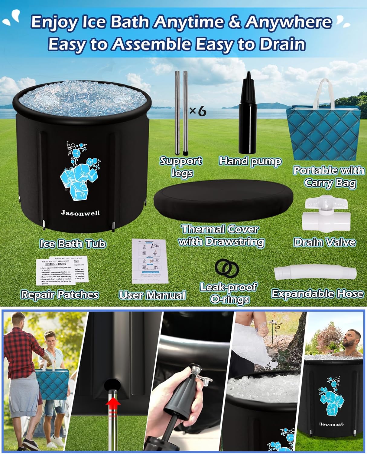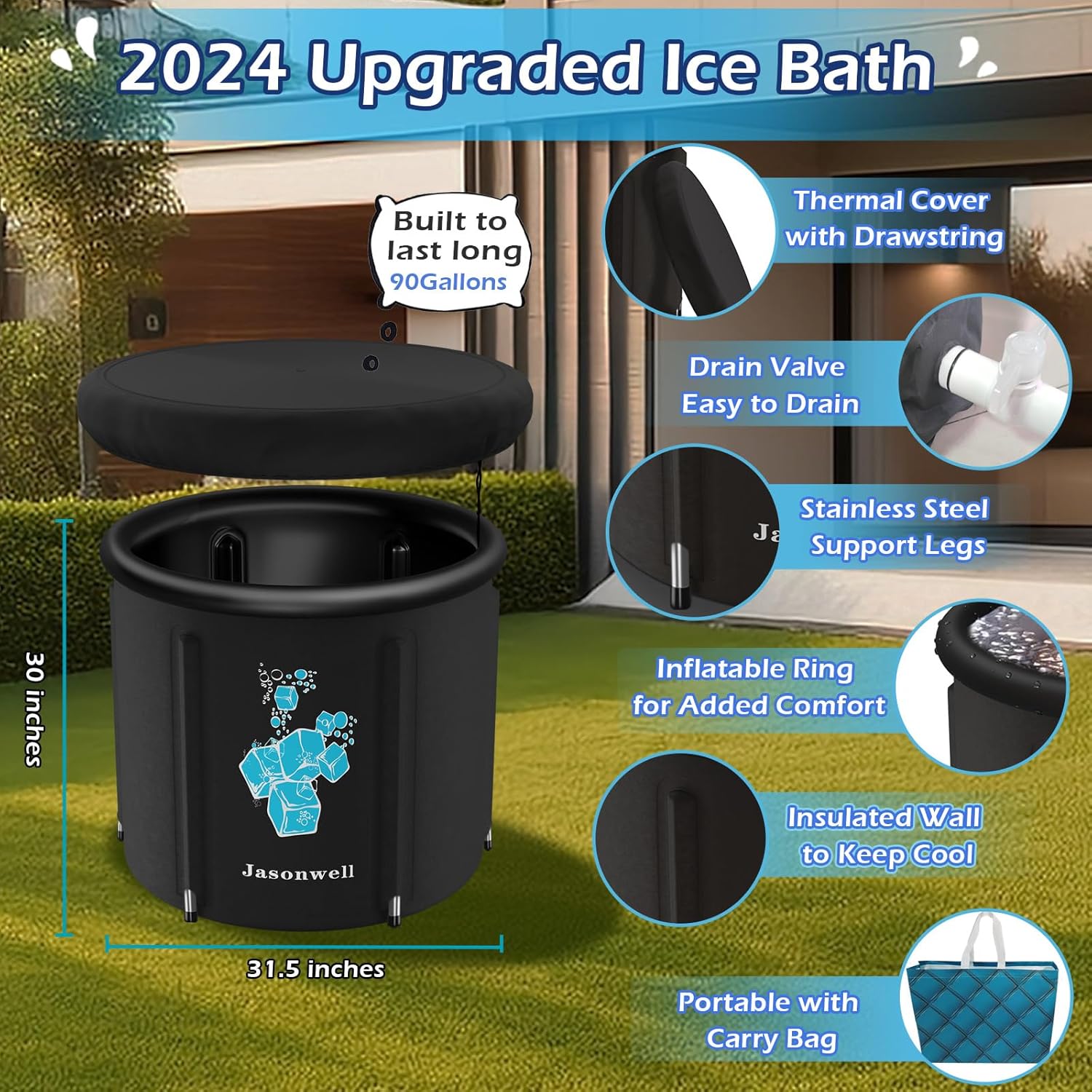 Jasonwell Ice Bath Tub for Athletes - Heavy Duty Cold Water Therapy Plunge Tub Ice Pod for Recovery Portable Ice Barrel Plunge Pool for Outdoor Inflatable Hot Tub Bathtub at Home for Adults