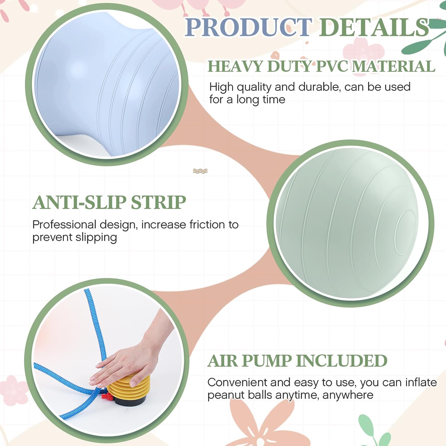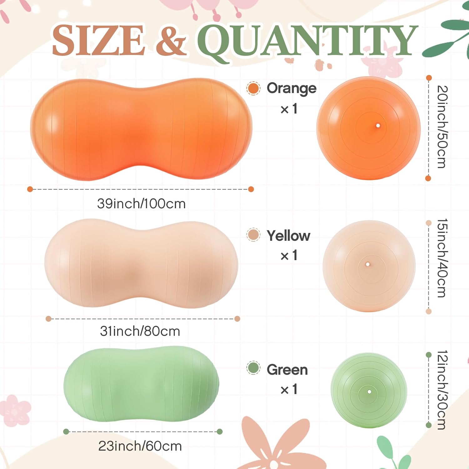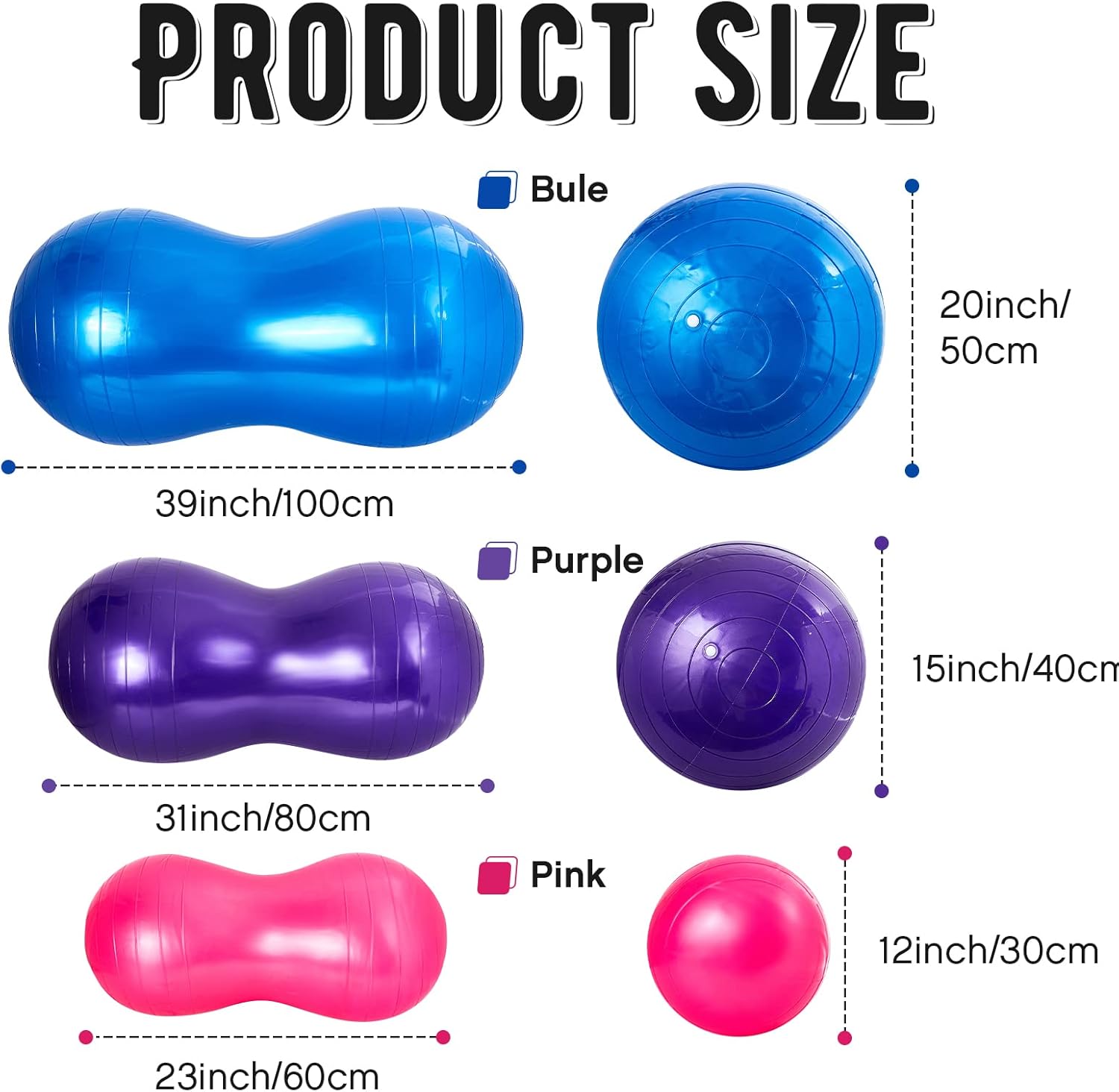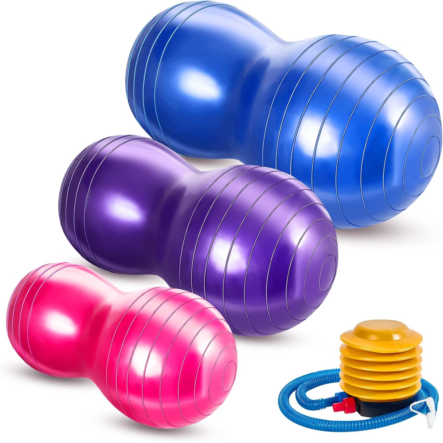 Jexine 3-Piece Anti-Burst Peanut Shape Ball Set - Exercise Yoga Balance Stability Ball for Kid Therapy, Pregnancy, and Home Gym, Includes 1 Pump, 3 Size Options