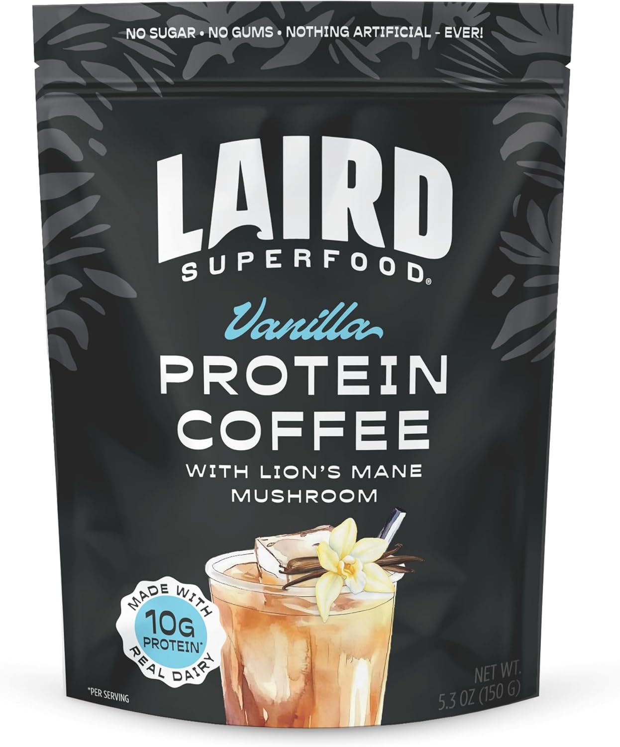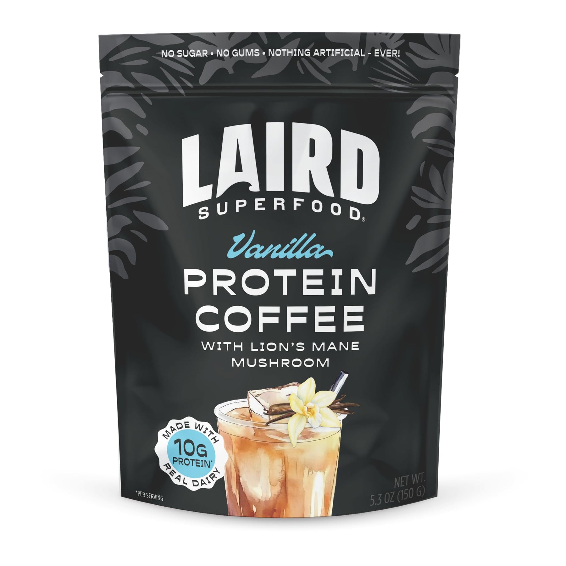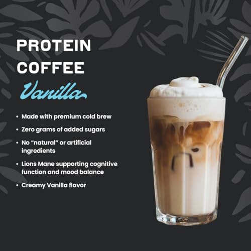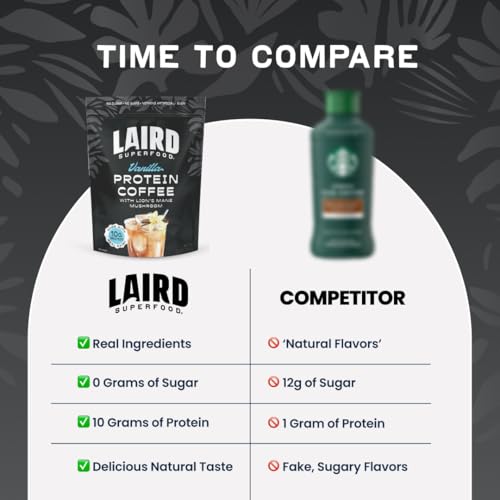 Laird Superfood Protein Coffee Powder - Vanilla Whey Protein, Instant Coffee Mix with Lion’s Mane - 10G Protein, 140mg Caffeine, 0g Sugar