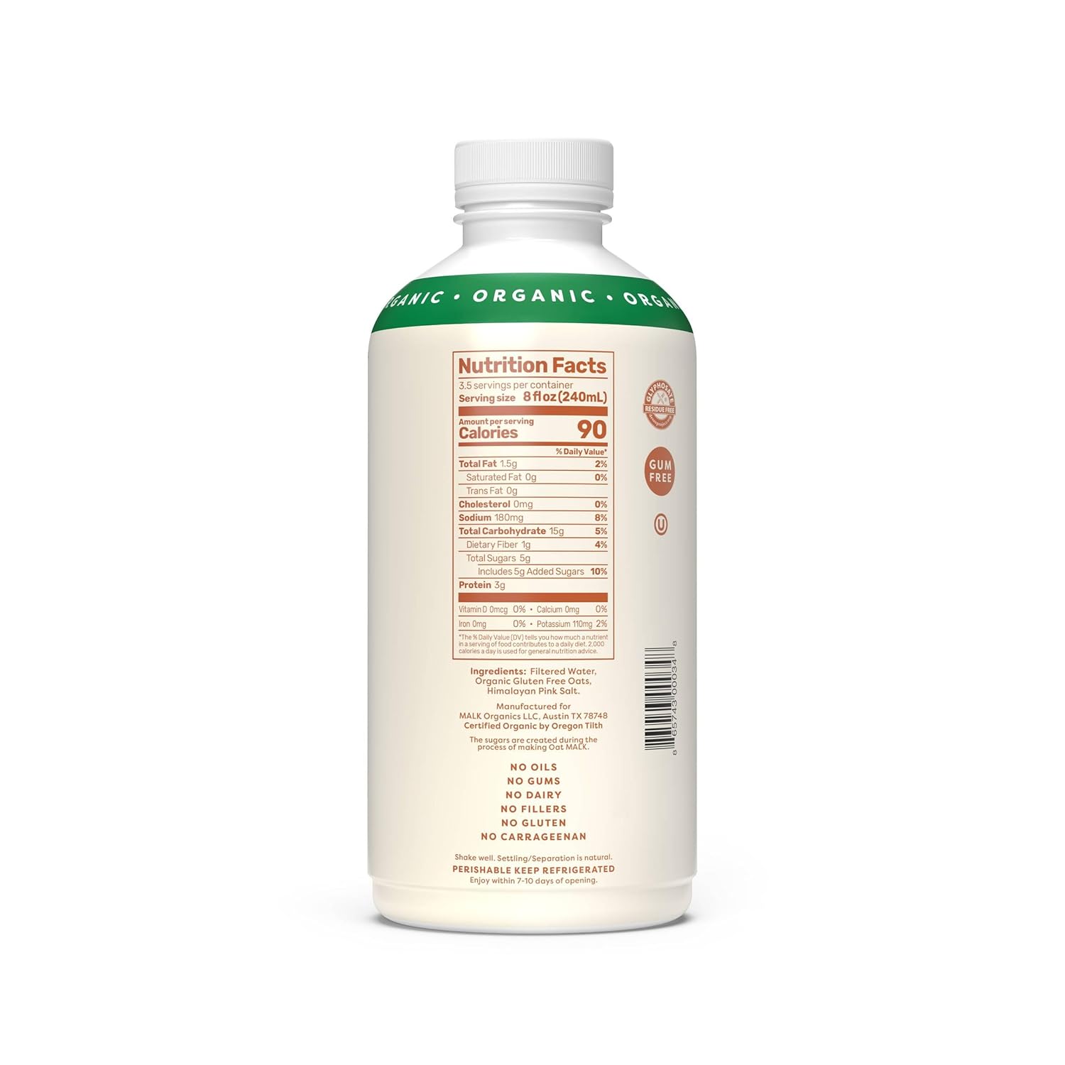 - 3 Simple Ingredients - Filtered Water, Organic Gluten Free Oats and Himalayan Pink Salt