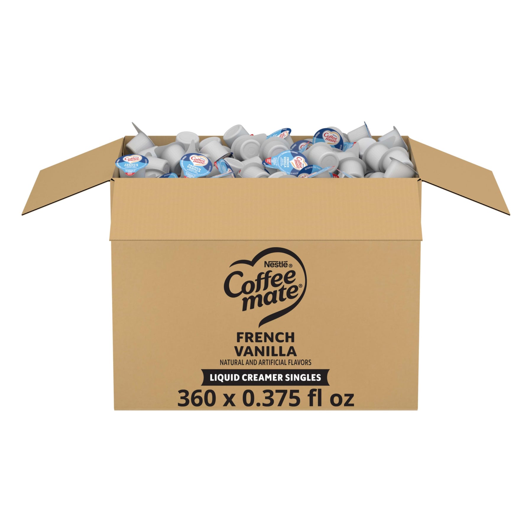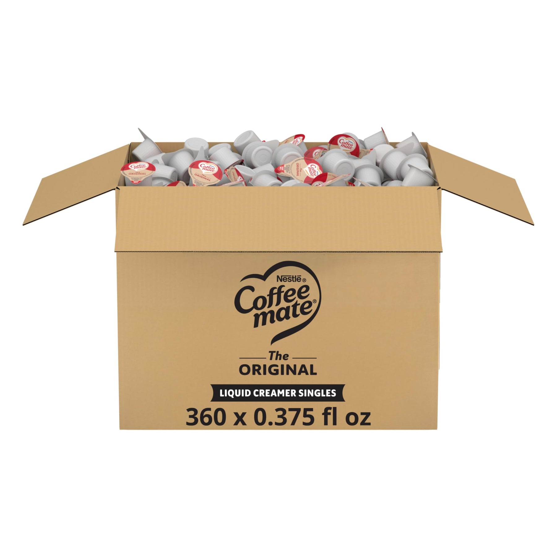 Nestle Coffee mate Original flavored liquid creamer singles are a classic favorite. Within each cup is a deliciously rich, velvety smooth creamer that will enhance and enrich your coffee offering with a touch of differentiation. Packaged in a 360 count box, these are the perfect solution for a delicious and convenient option to customize your favorite beverage. These creamer singles don’t need to be refrigerated and can retain their irresistible flavor at room temperature for up to 9 months. Easy to use - shake, open and pour. Non-Dairy + Lactose-Free + Cholesterol-Free + Gluten-Free + Kosher Dairy. Coffee mate is America's #1 coffee creamer. With a variety of flavors and formats, Coffee mate has your coffee creamer needs covered. Delight your employees, customers and guests by offering Coffee mate liquid creamer in your workplace, break room or kitchen.