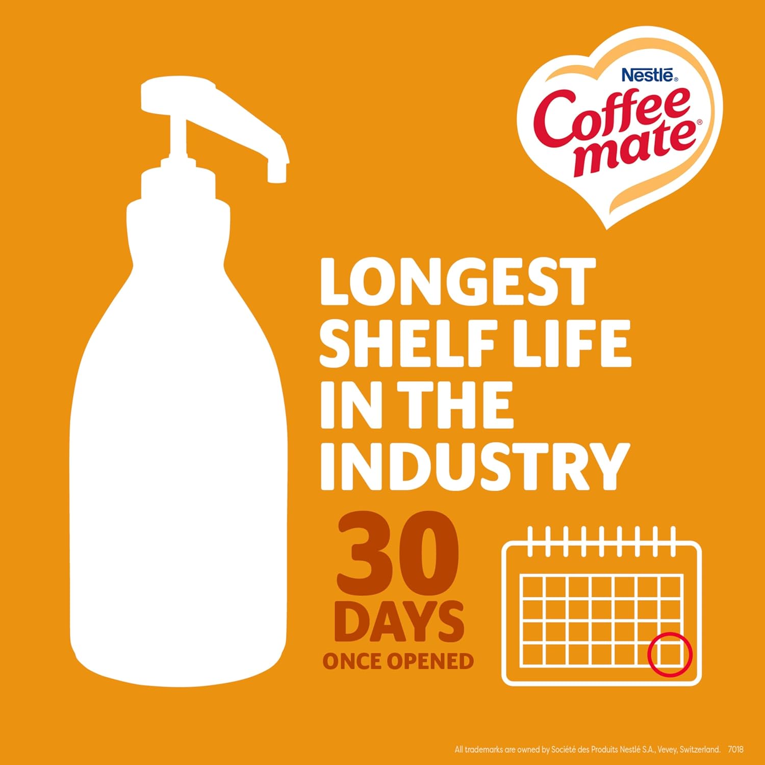 With a variety of flavors and formats, Coffee-mate has your coffee creamer needs covered. Delight your employees, customers and guests by offering Coffee-mate liquid creamer in your workplace, break room or kitchen. Once attached onto the bottle, The pump neck must be released for the pump to depress and start working. Make sure the pump base is as tight as possible. Then release the top by turning it to the left while holding firm the red base on the pump and the neck should pop up. Do not refrigerate this product or the liquid inside the pump will start to harden and the pump will be difficult to depress. If this happens, run the pump under hot water to loosen the liquid inside the pump. The pump is non-removable once installed to ensure food safety. The product formula has sugar added which makes this product shelf stable. This proprietary pump bottle format is offered exclusively by Coffee-mate.