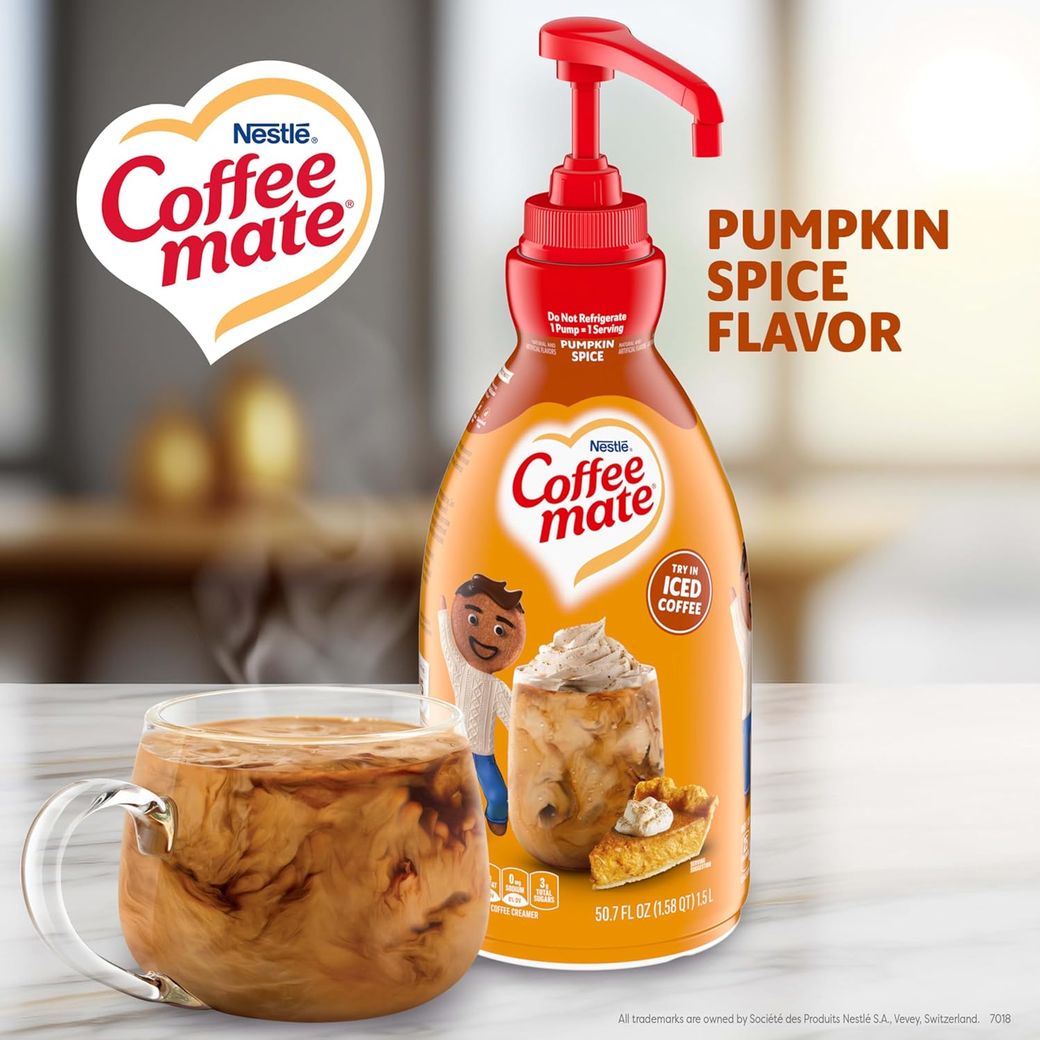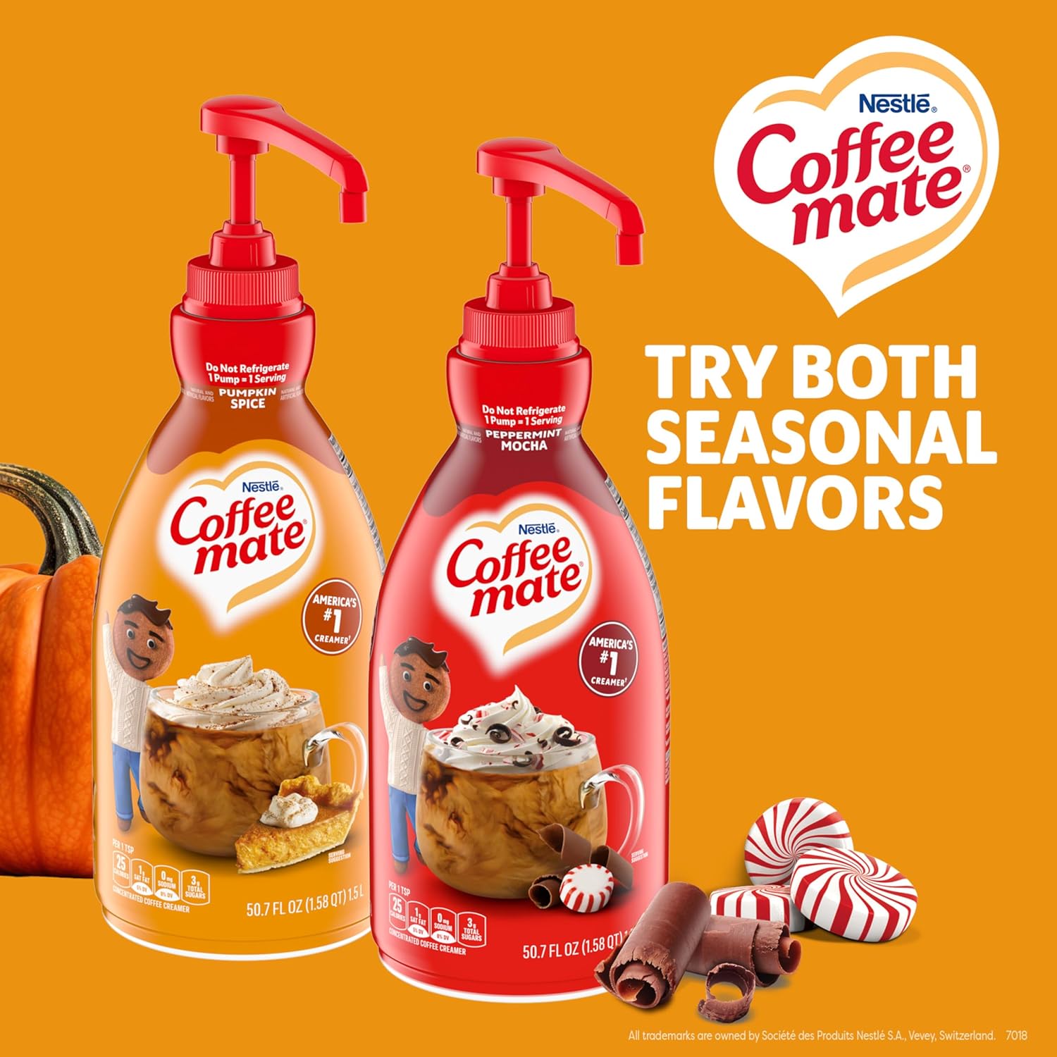 - Flavored Coffee Creamer: Nestle Coffee mate Pumpkin Spice Flavored Liquid Concentrate Pump Bottle adds a deliciously rich pumpkin flavor with a hint of spice to your cup of coffee