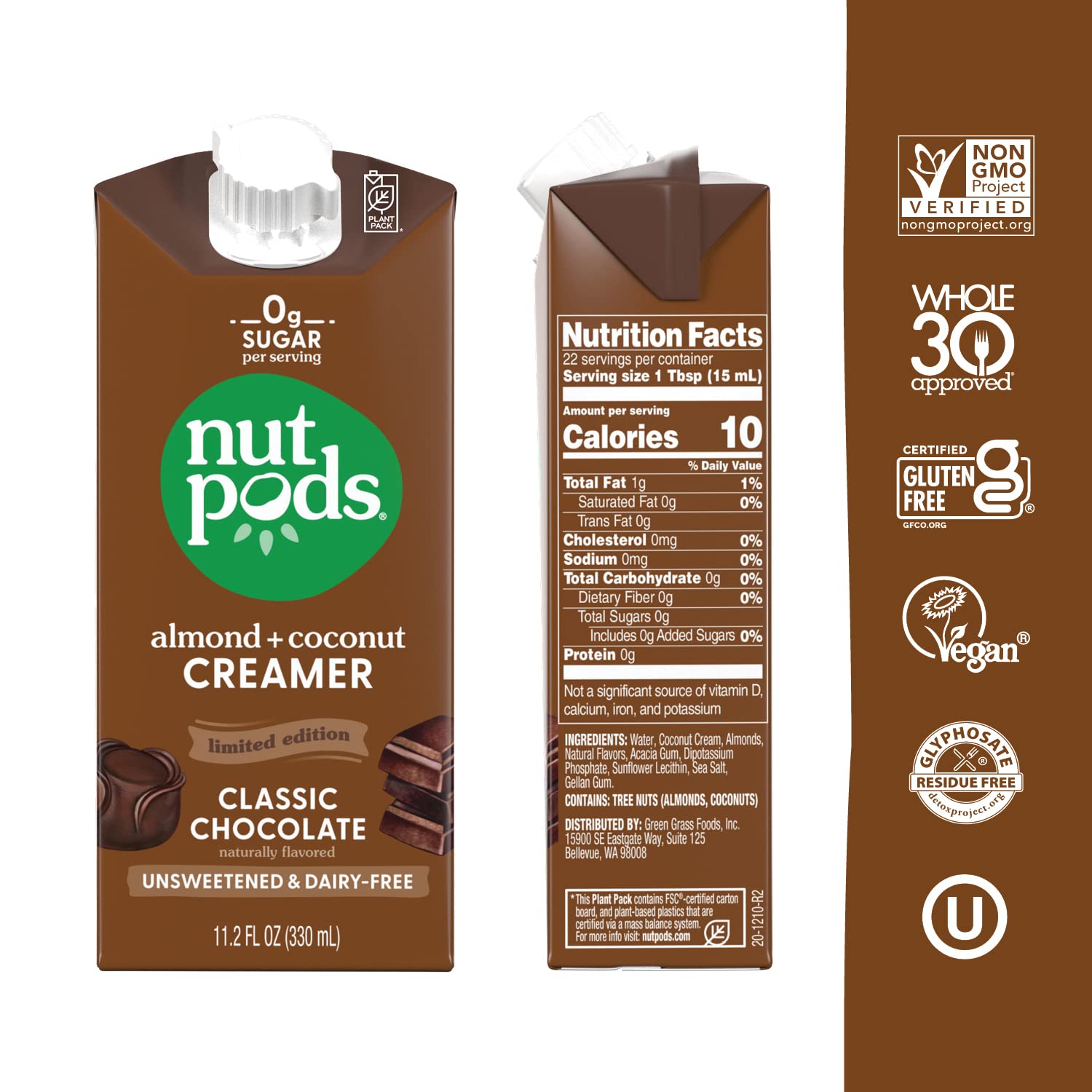 - Zero Sugar- nutpods is a rich, smooth coffee creamer made from almonds & coconuts with only 10 calories and zero grams of sugar per serving.