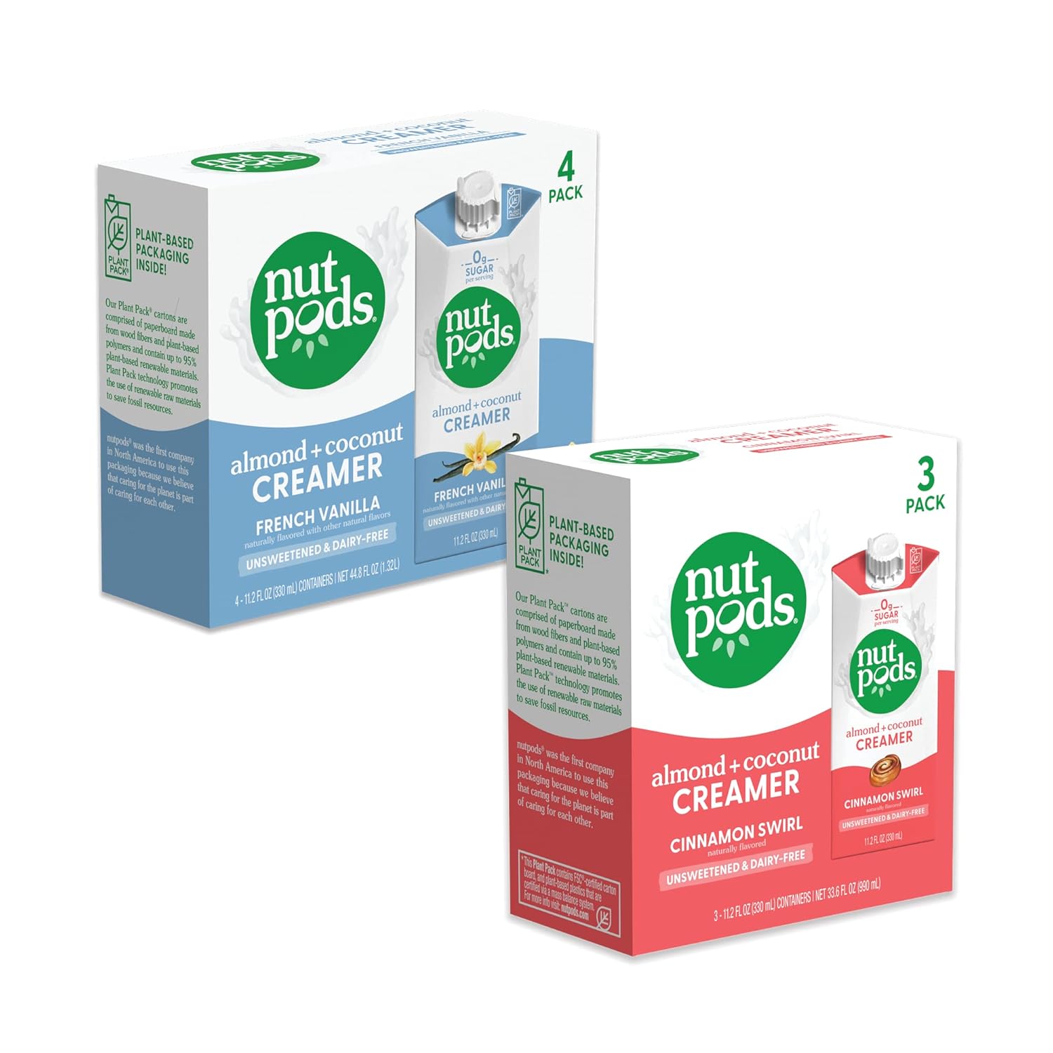 - Zero Sugar Per Serving - nutpods is a rich, smooth coffee creamer made from almonds & coconuts with only 5-10 calories (depending on flavor) and zero grams of sugar per serving.