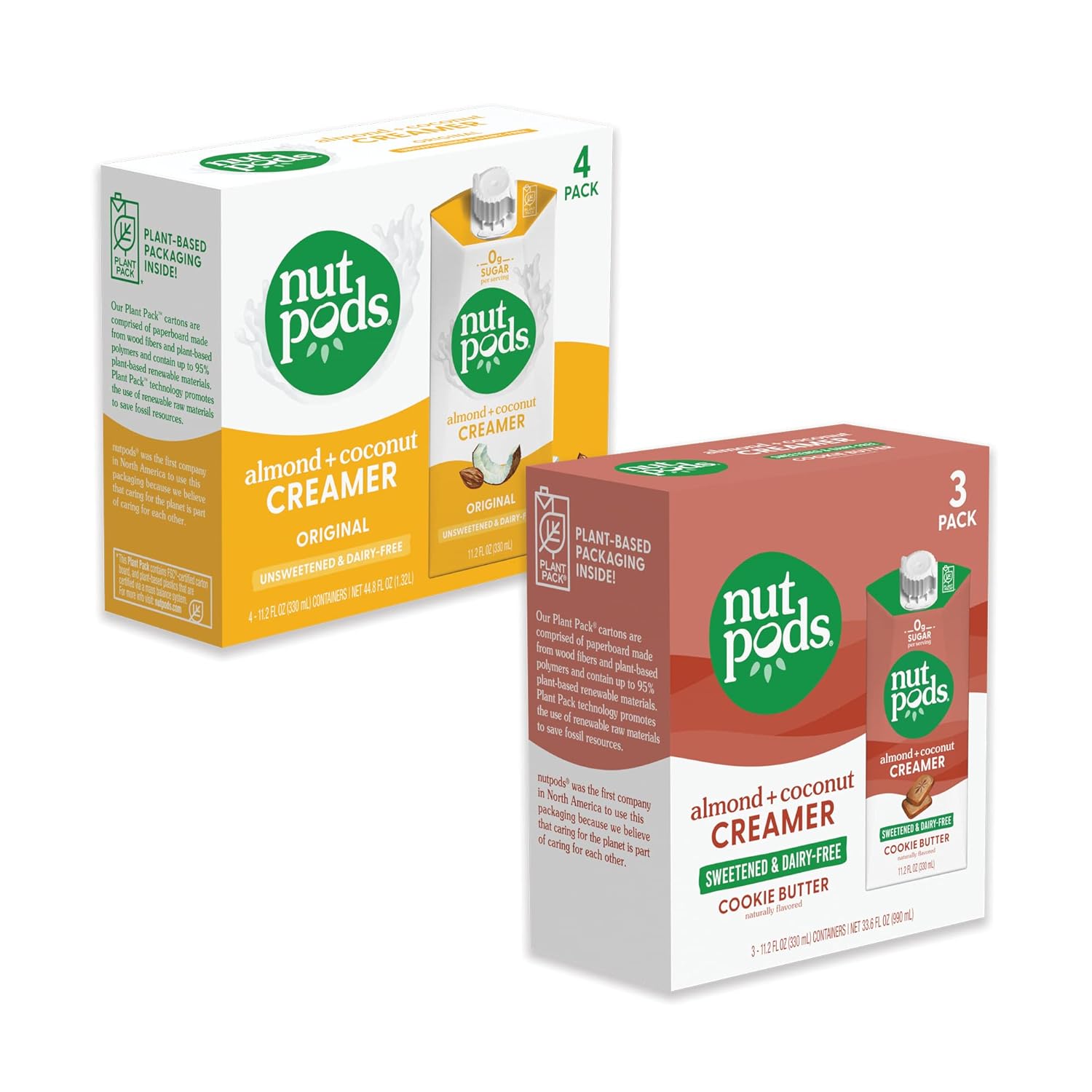 nutpods Non Dairy Coffee Creamer Bundle: a 4 pack of our Original creamer and a 3 pack of our Cookie Butter creamer.