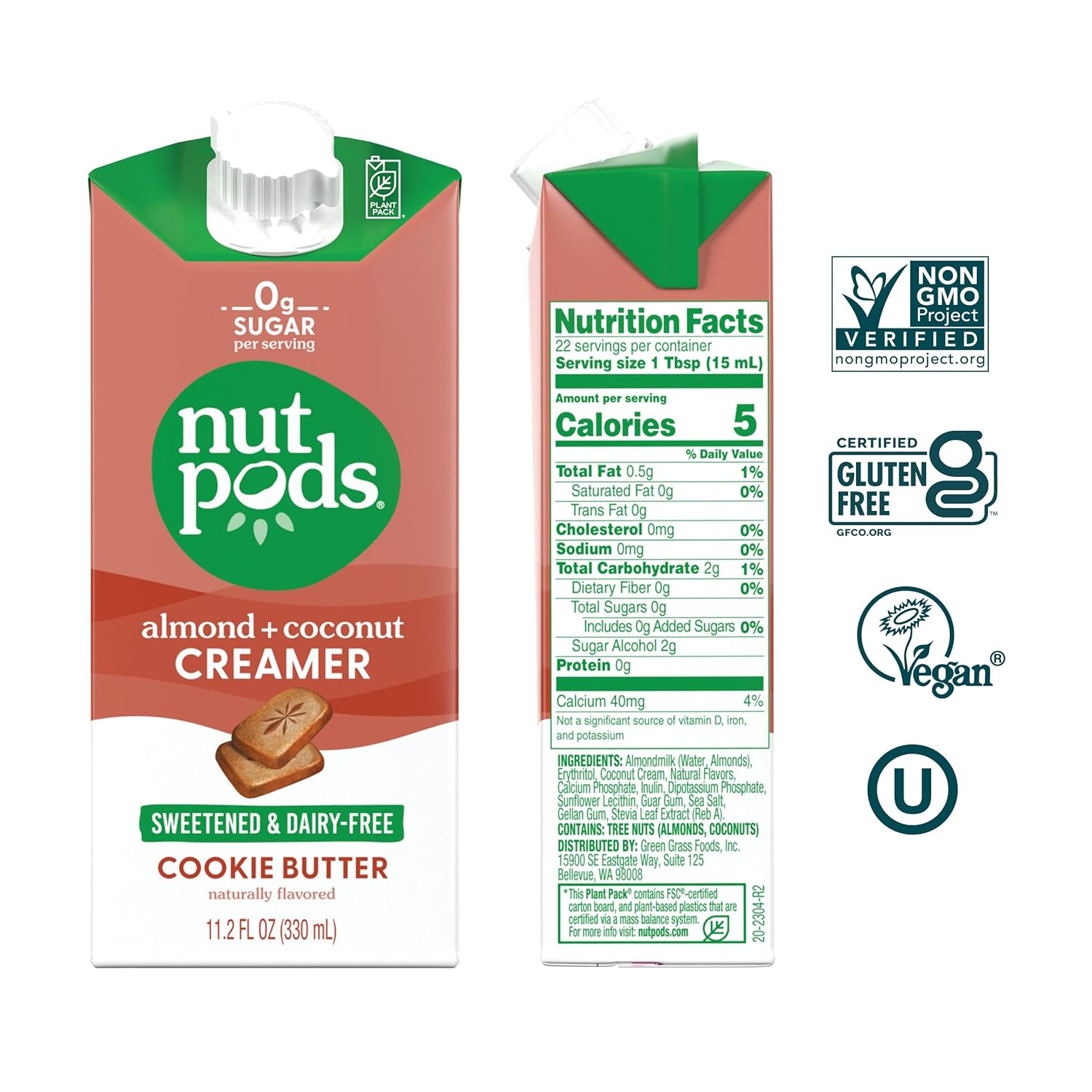 - Zero Sugar Per Serving - nutpods is a rich, smooth coffee creamer made from almonds & coconuts or oats (depending on flavor) with only 5-10 calories (depending on flavor) and zero grams of sugar per serving.