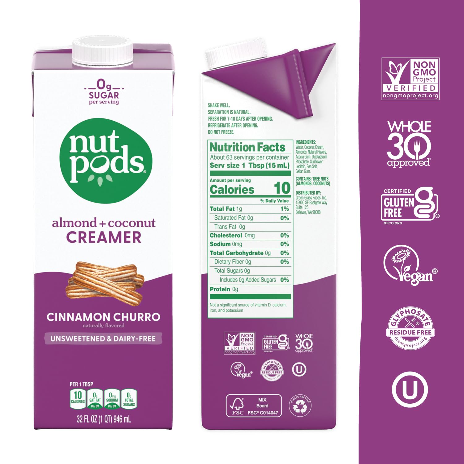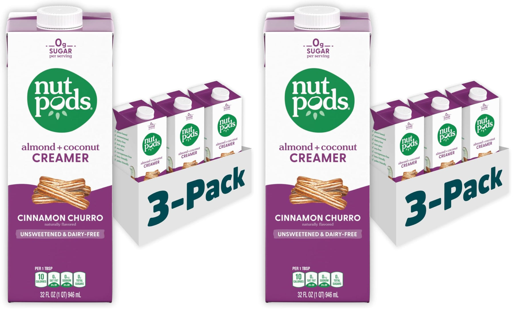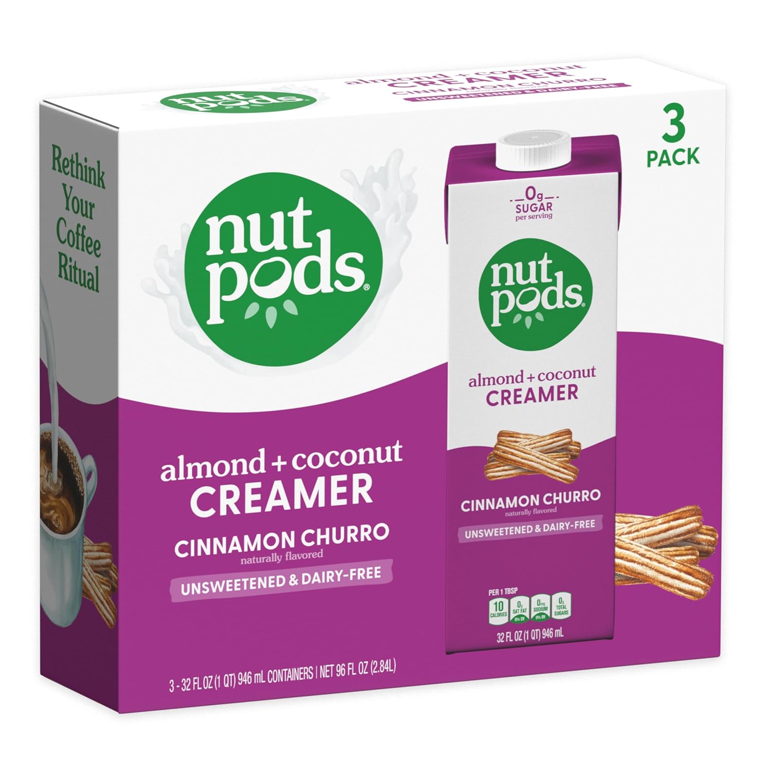 - Unsweetened – nutpods Cinnamon Churro non dairy creamer is unsweetened with no sweeteners or added sugars, for a deliciously subtle flavor that allows your coffee to shine through.