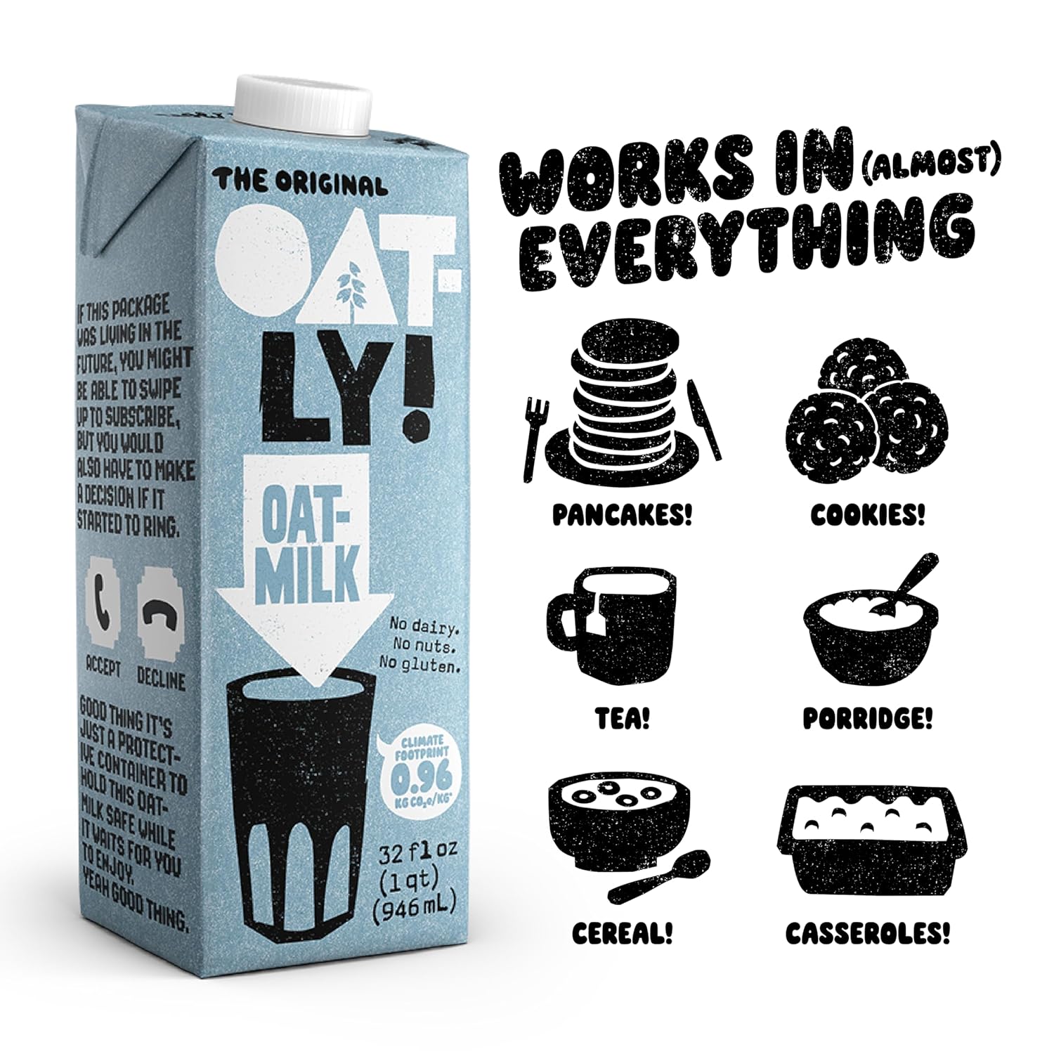 - POUR IT, BLEND IT, COOK WITH IT, WHATEVER: Oatly Original makes everything better. On your cereal, in smoothies, overnight oats & any recipe that calls for milk. Designed to perform like 2% cow's milk in your cooking and baking.
