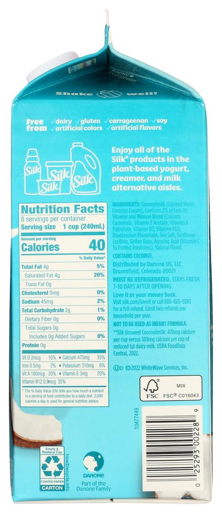 Silk Coconut Milk, Unsweetened, 64 Ounce (Pack of 6)