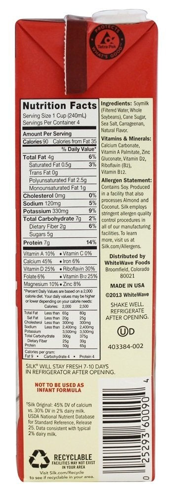 Silk Lactose Free Plain Organic Soymilk 32 Oz