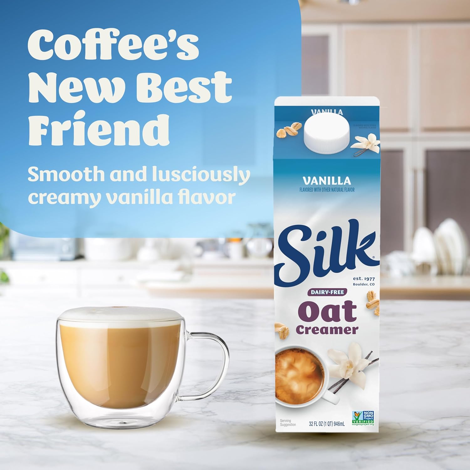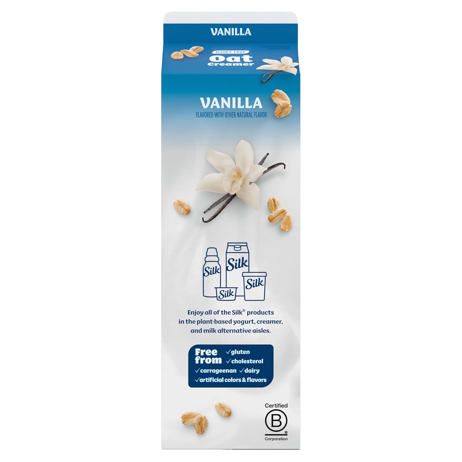 - Lusciously Creamy: One 32 fl oz Silk Vanilla Dairy Free, Gluten Free Oat Creamer Carton