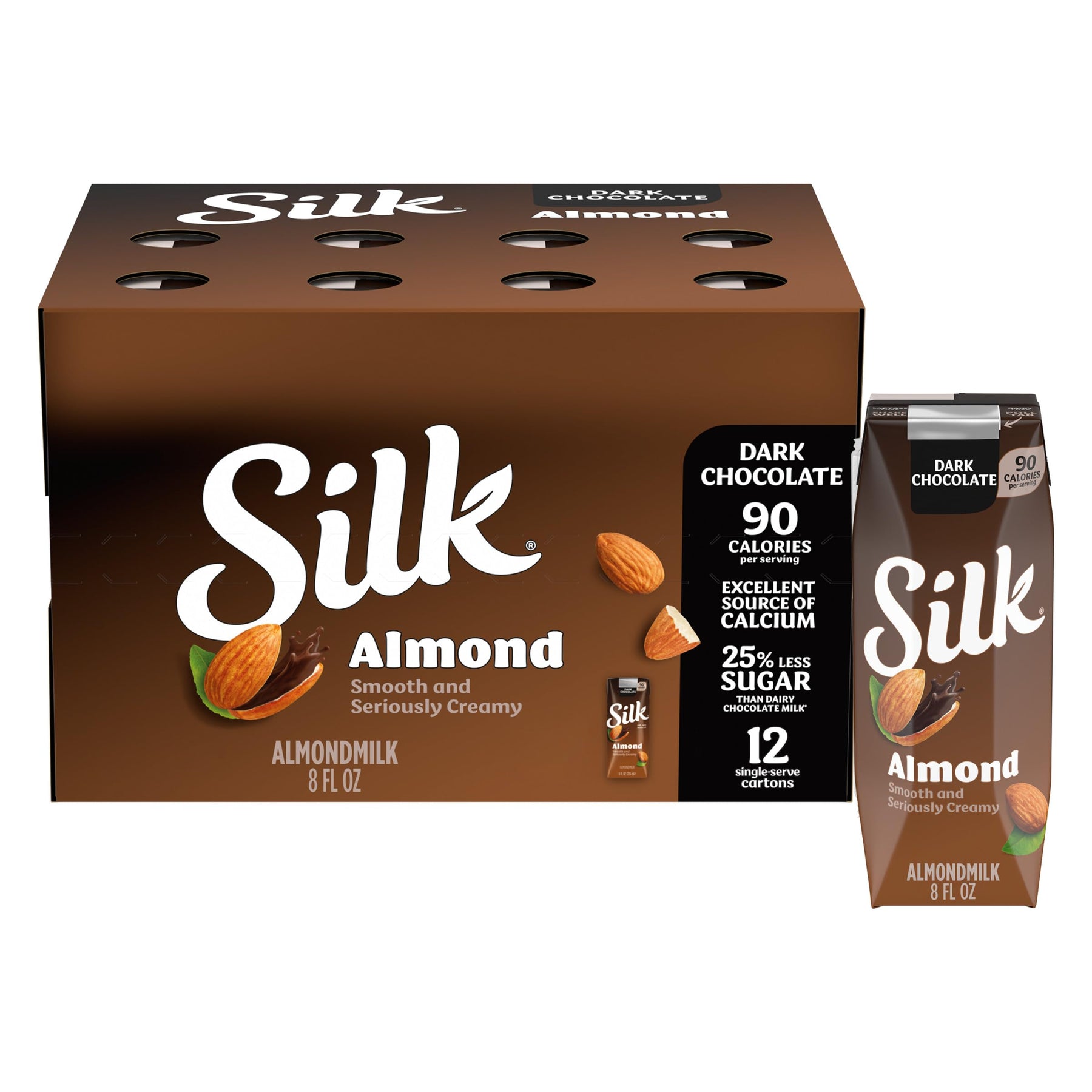 Bring the creamy goodness of almondmilk to your pantry with Silk Shelf-Stable Vanilla Almondmilk. Kissed with a delicate hint of vanilla, this almondmilk is delicious whether it’s poured over cereal, added to your favorite recipes, or enjoyed straight out of the glass. It makes a perfect non-dairy alternative to milk, and is totally free of dairy, soy, lactose, gluten, casein, egg, and MSG. Silk Almondmilk provides vitamin E and contains 50% more calcium than dairy milk.* And since it comes in special, shelf-stable packaging, this vanilla nutmilk will keep fresh at room temperature, unopened, until the date code: no refrigeration necessary! *Silk Vanilla Almondmilk: 450mg of calcium per cup; reduced fat dairy milk: 293mg of calcium per cup. USDA National Nutrient Database for Standard Reference. Data consistent with typical reduced fat dairy milk.