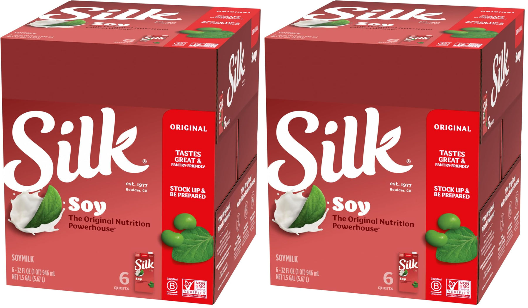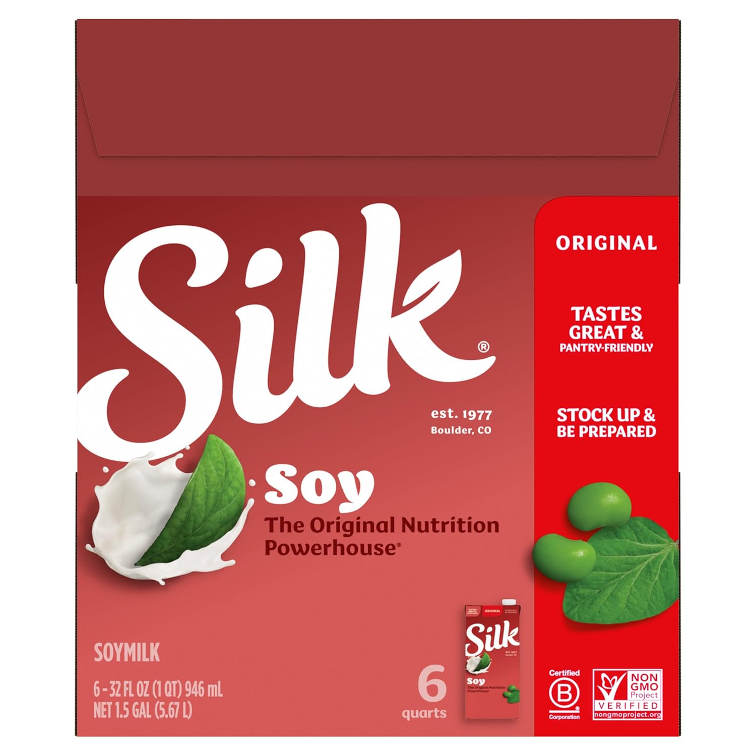 Silk Original Aseptic Soy Milk, 8g Protein per Serving, Plant Based, No Artificial Colors or Flavors, Kosher, Gluten Free & Non-GMO, 32 Fluid Ounce (Pack of 6)