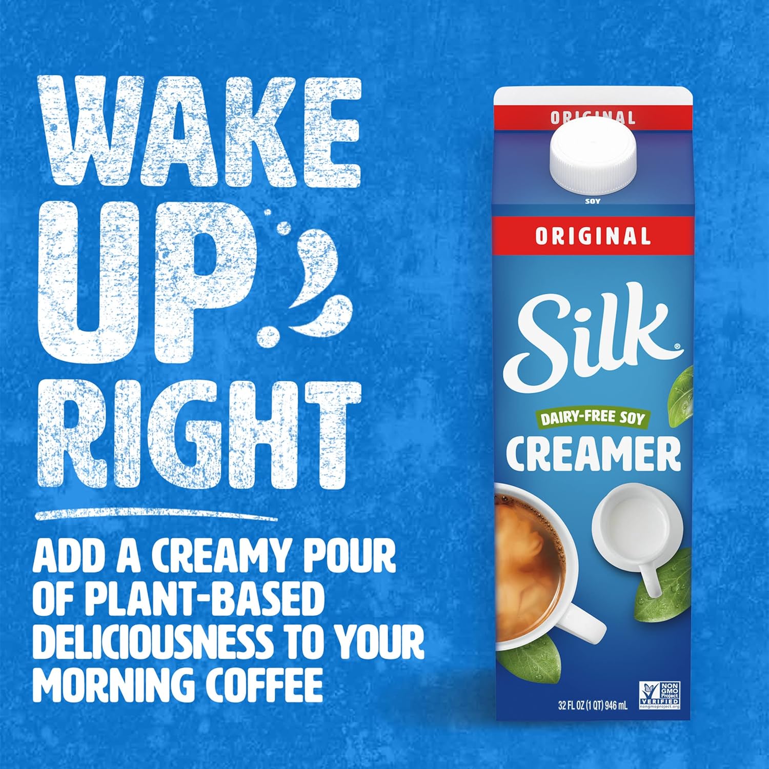 Take your morning joe up a notch. Silk Soy Original Creamer takes coffee and tea to new, deliciously creamy heights. Filled with sweet taste, this creamer adds a splash of smooth, rich flavor to your favorite morning drink. You can enjoy the soy creamer each morning, knowing it is gluten-free, Non-GMO Project Verified, and free of artificial colors or flavors.