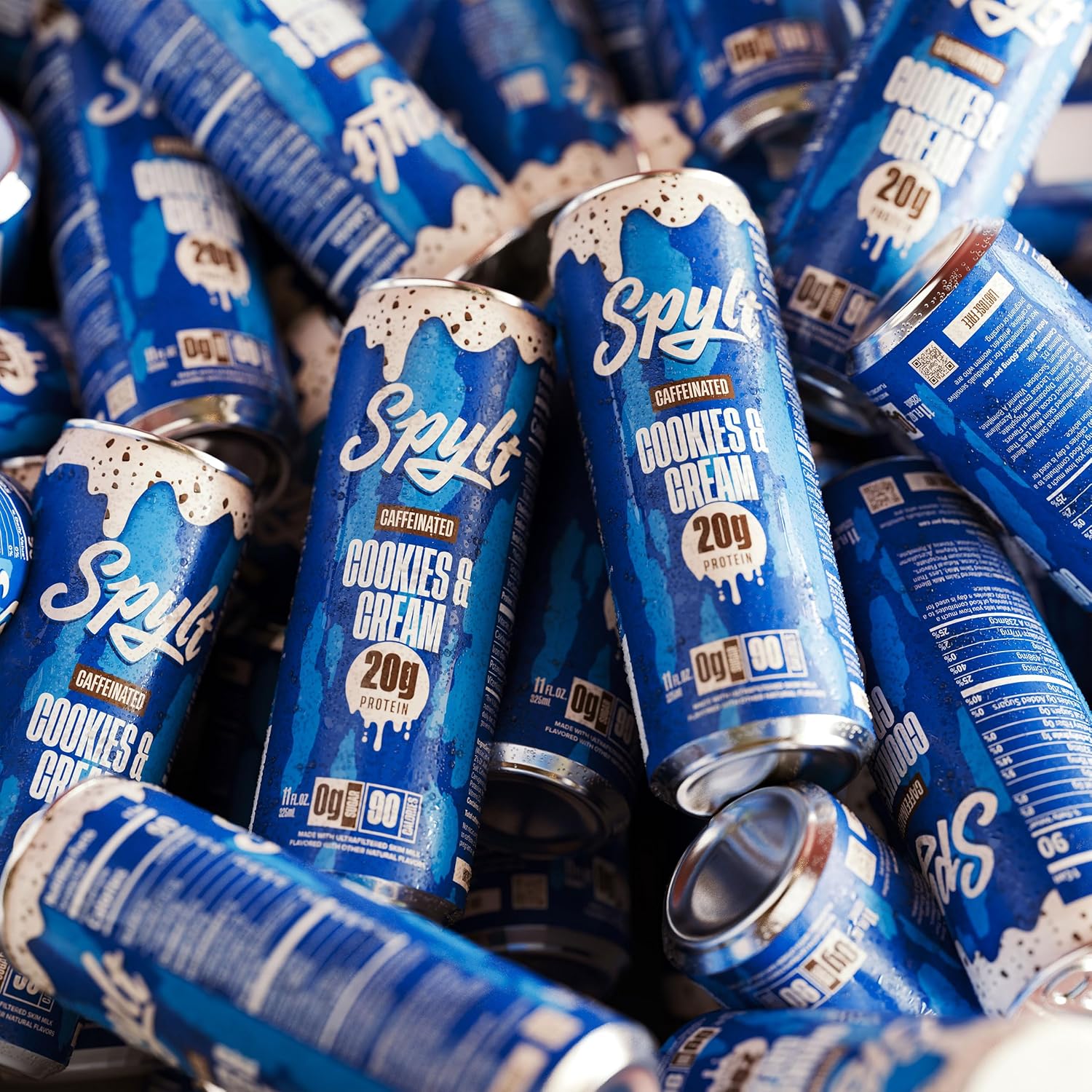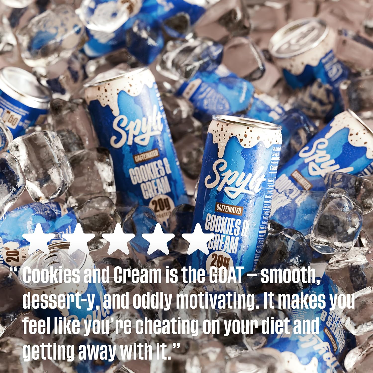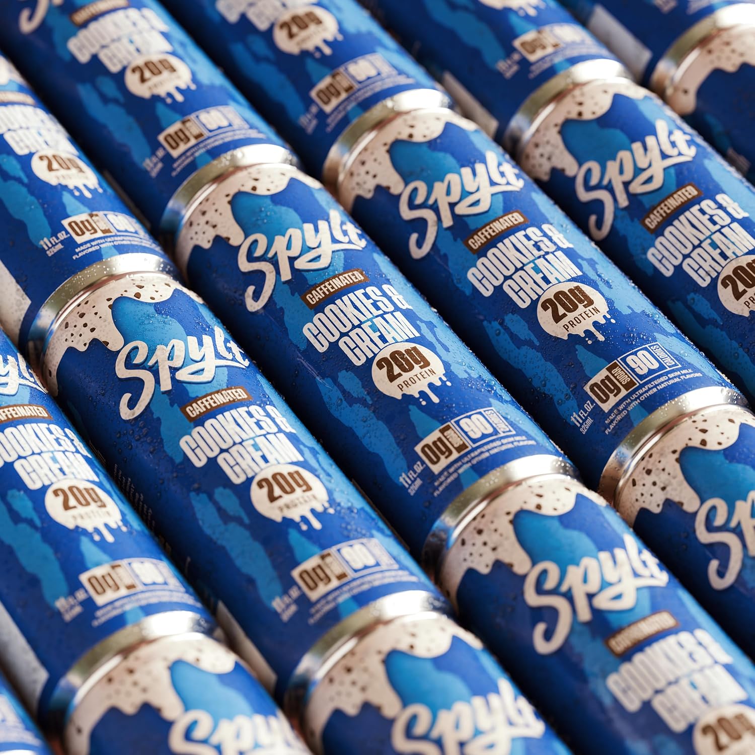 - CAFFEINATED PROTEIN BOOST: Cookies & Cream Milk with a giant caffeinated kick in the pants. With 60mg of liquid caffeine, and 20g of protein milk, SPYLT is your caffeinated compadre and AFTERNOON PICK ME UP!